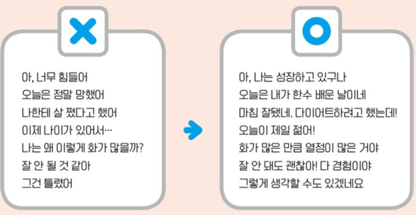 인간관계는 거울의 법칙이 작용하기 때문에 내가 뿌린 대로 고스란히 돌아오게 마련이죠. 그러니 상대뿐 아니라 나 자신을 위해서도 긍정적인 펩 토크를 건네야 합니다. 257쪽