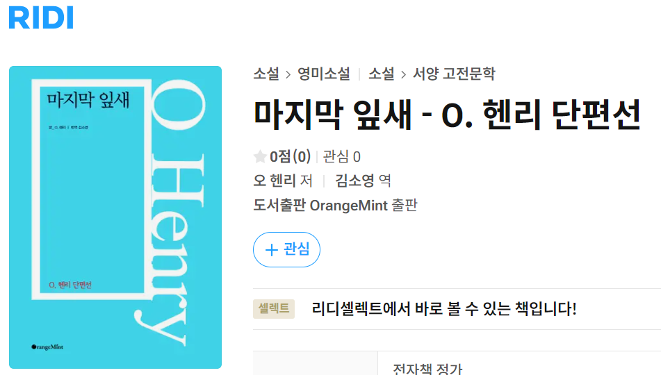 미국의 대표 단편소설가인 오 헨리의 .. 단편 소설은 꽤나 많지만..