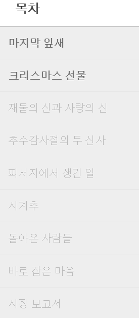 리디에서 읽는 이 단편선은.. 몇 개 되지 않아서.. 정말 단편 소설을 읽는 분위기가 난다.