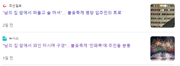 인터넷에 '한강 불꽃축제'를 보려고 남의 집 앞에 난입한 파렴치들과,