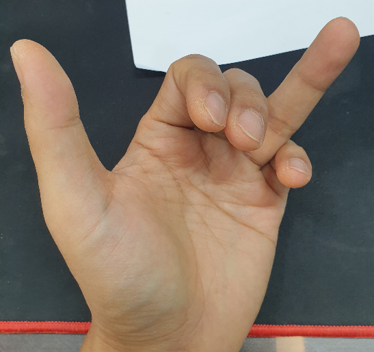 아래 그림처럼 퍼큐 같은 손가락 모양의 운지가 '라' 이다..