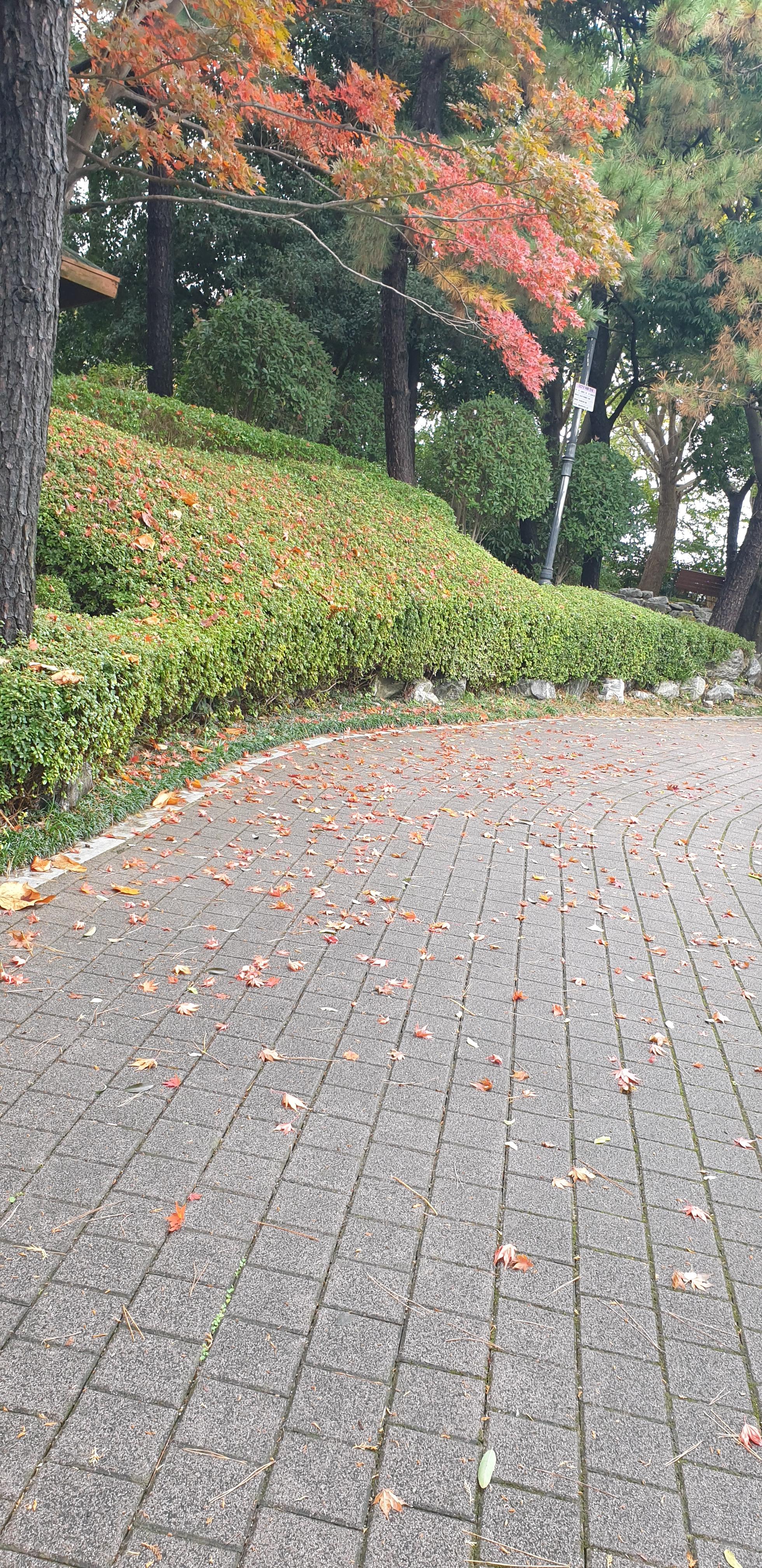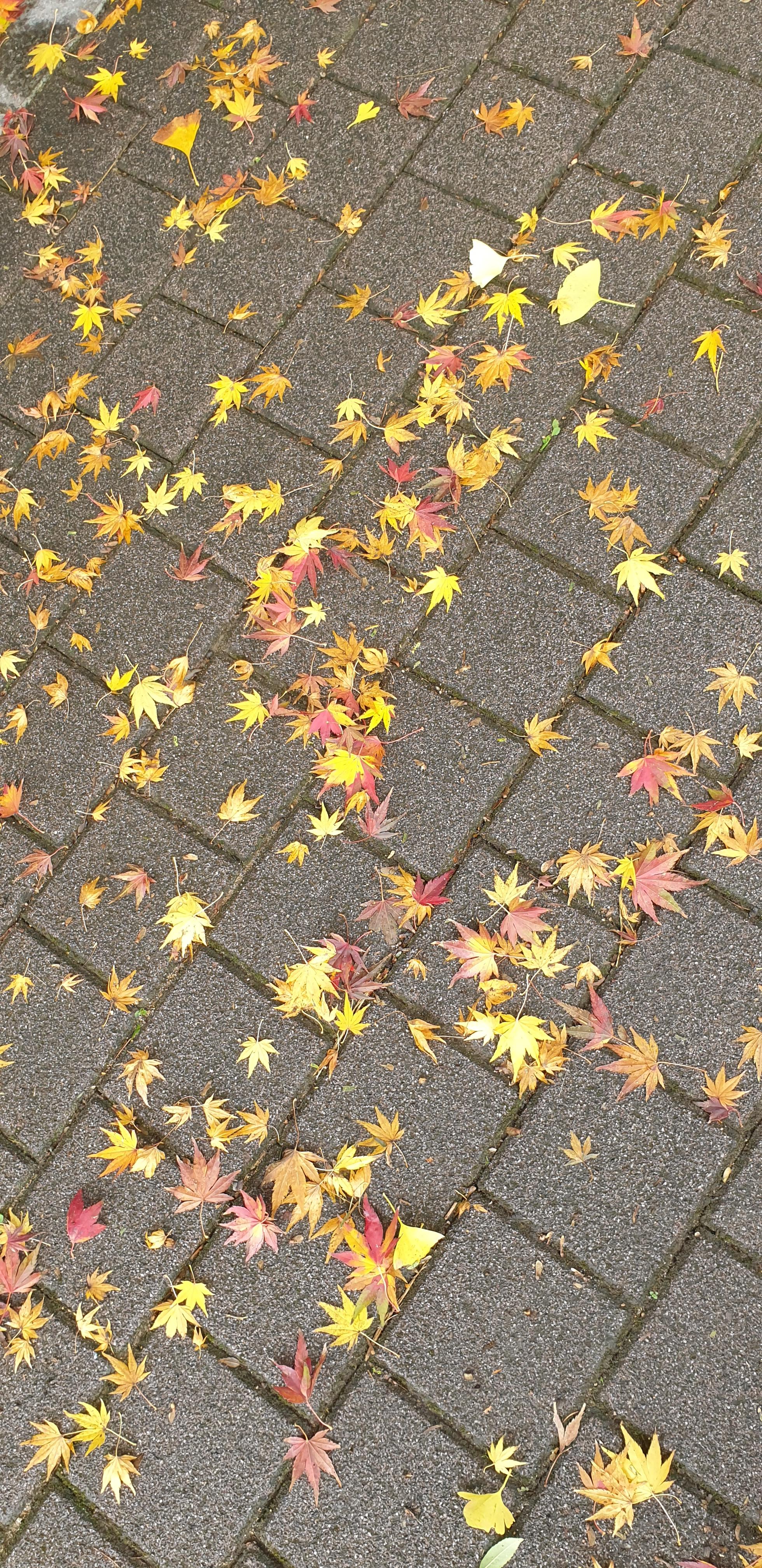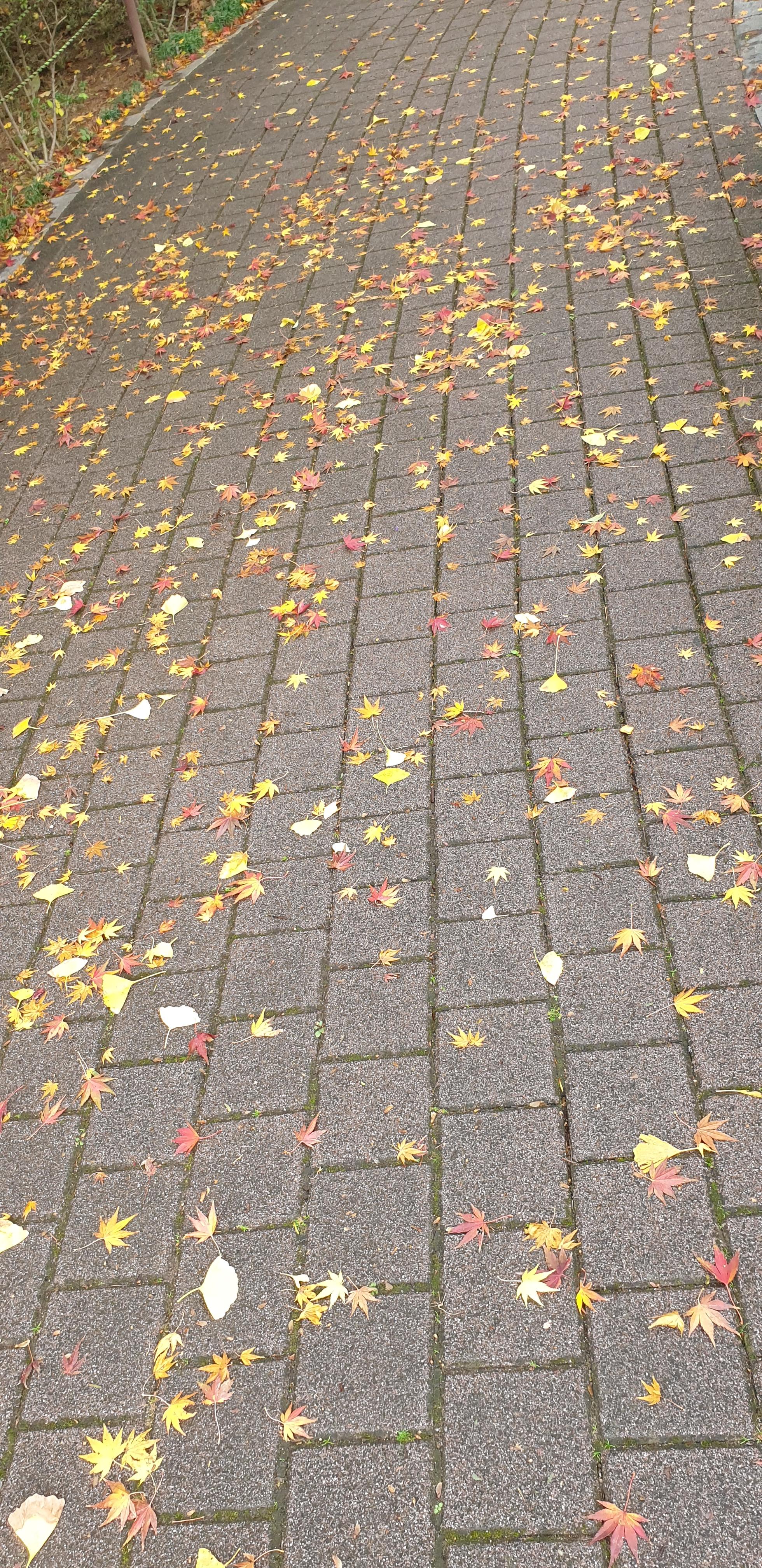 평소에는 회색 빛 보도블록이라서, 낙엽이 떨어져도 그다지 구별이 되지 않아서 몰랐는데..