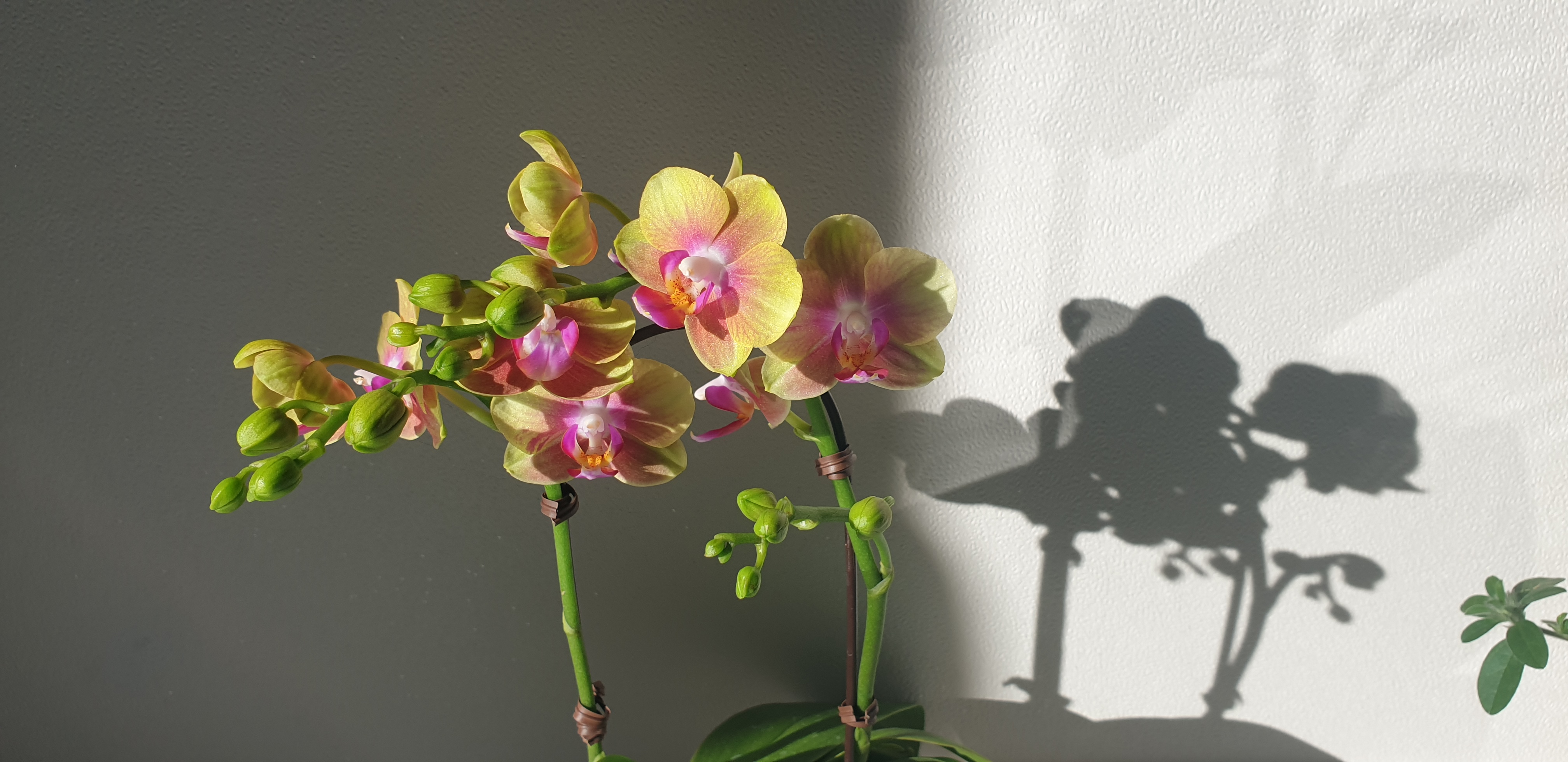 주말 아침.. 해가 뜨면서.. 꽃 뒤로 그림자가 지는데..