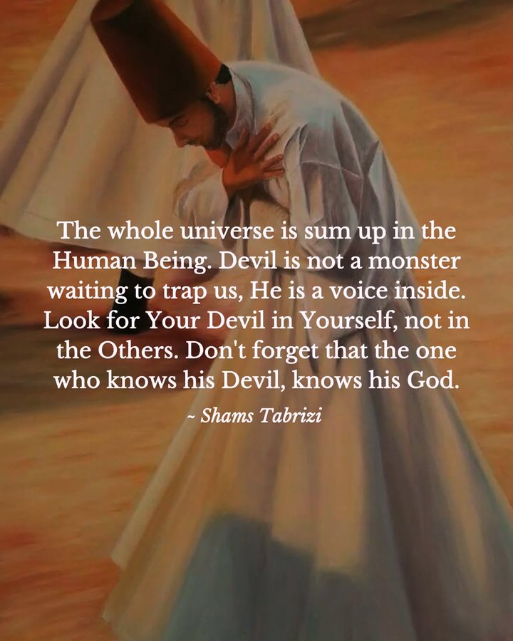 루미의 신념은 비이원적 가르침을 깊이 읽고, 의미를 알아내고, 목적을 실천하는 수피 신비주의자의 신념이었습니다. 그 결과 진실에 대한 깨달음, 우리의 생각 방식에 대한 인식, 모든 것을 있는 그대로 용서하고 받아들이는 것이 가능해져 큰 평화와 사랑에 대한 인식이 가능해졌습니다.