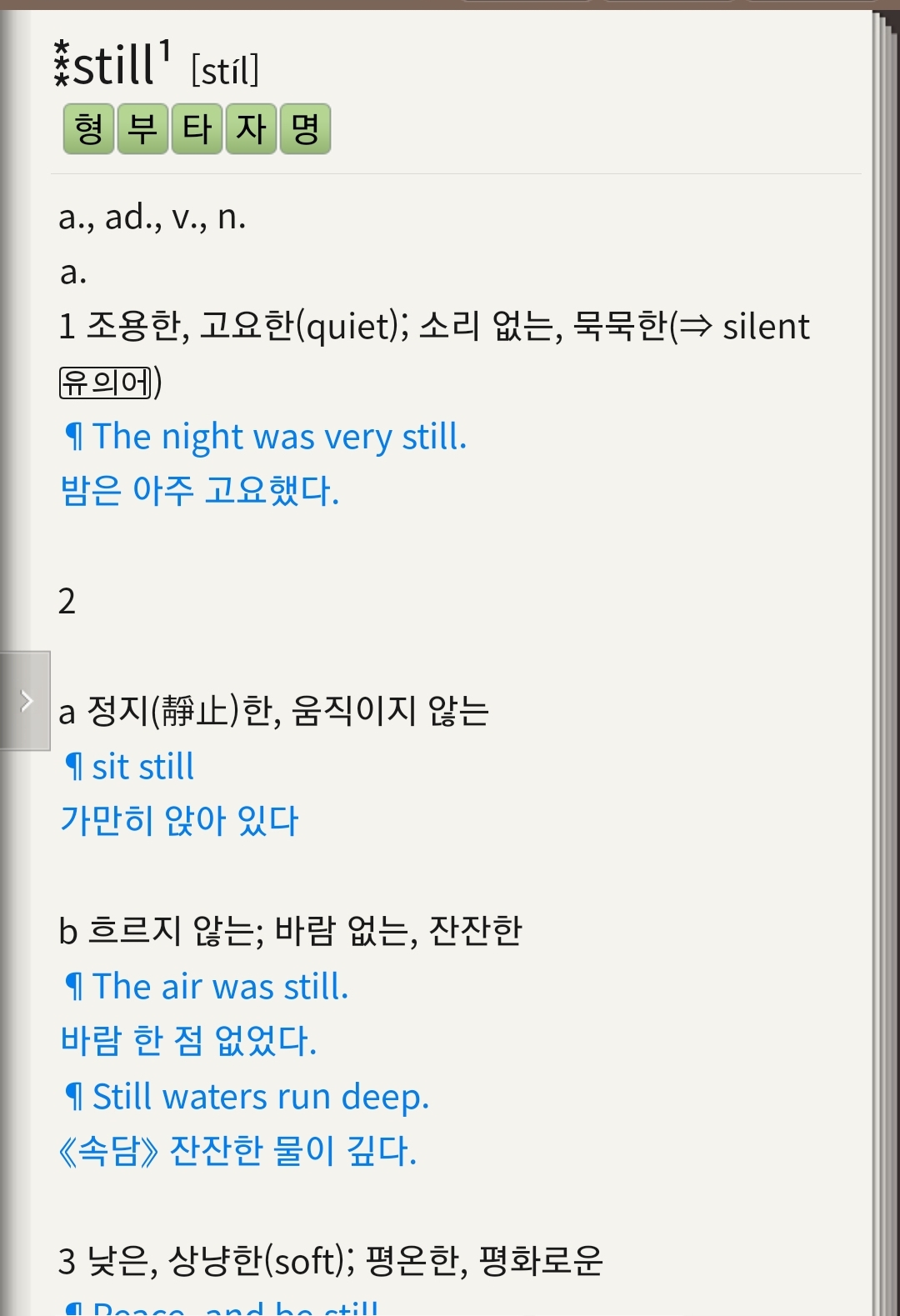 결론적으로.. '고요하다'란 의미의 스틸인 듯하다.
