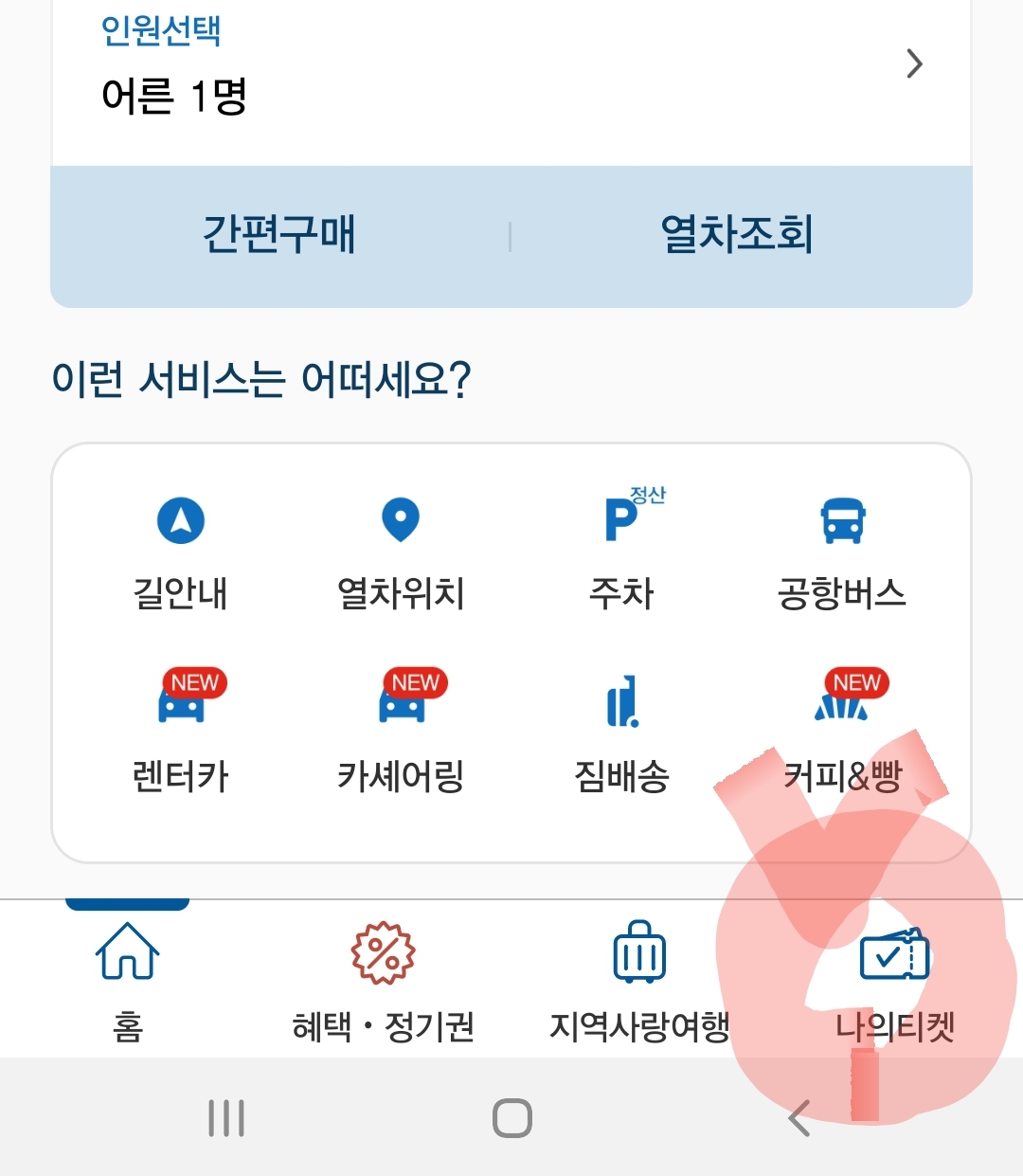 좌석 확인을 위해서 핸폰의 열차어플을 켜니..