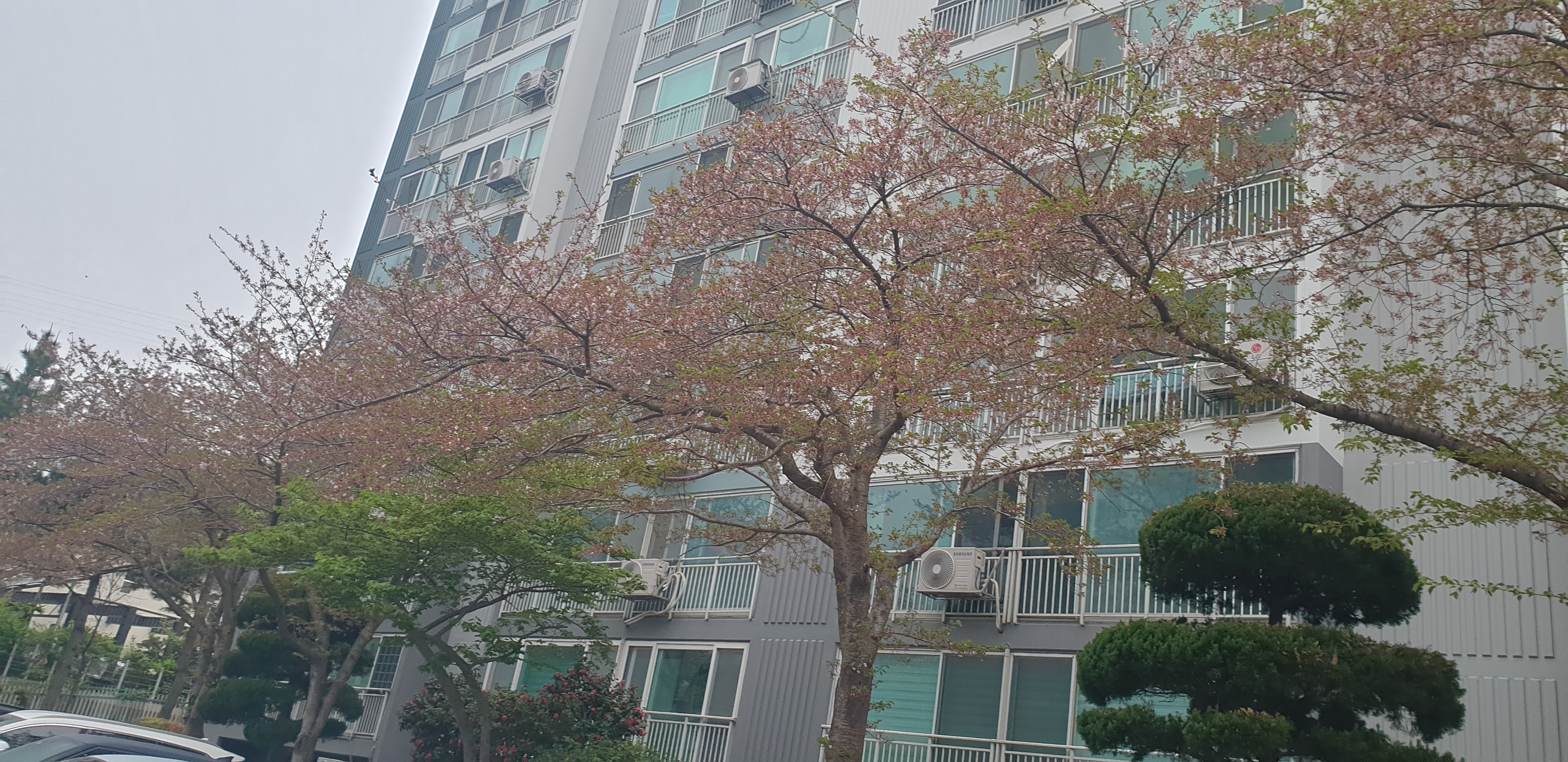 아침 출근길에 분홍빛이 드문한 나무들을 보니..