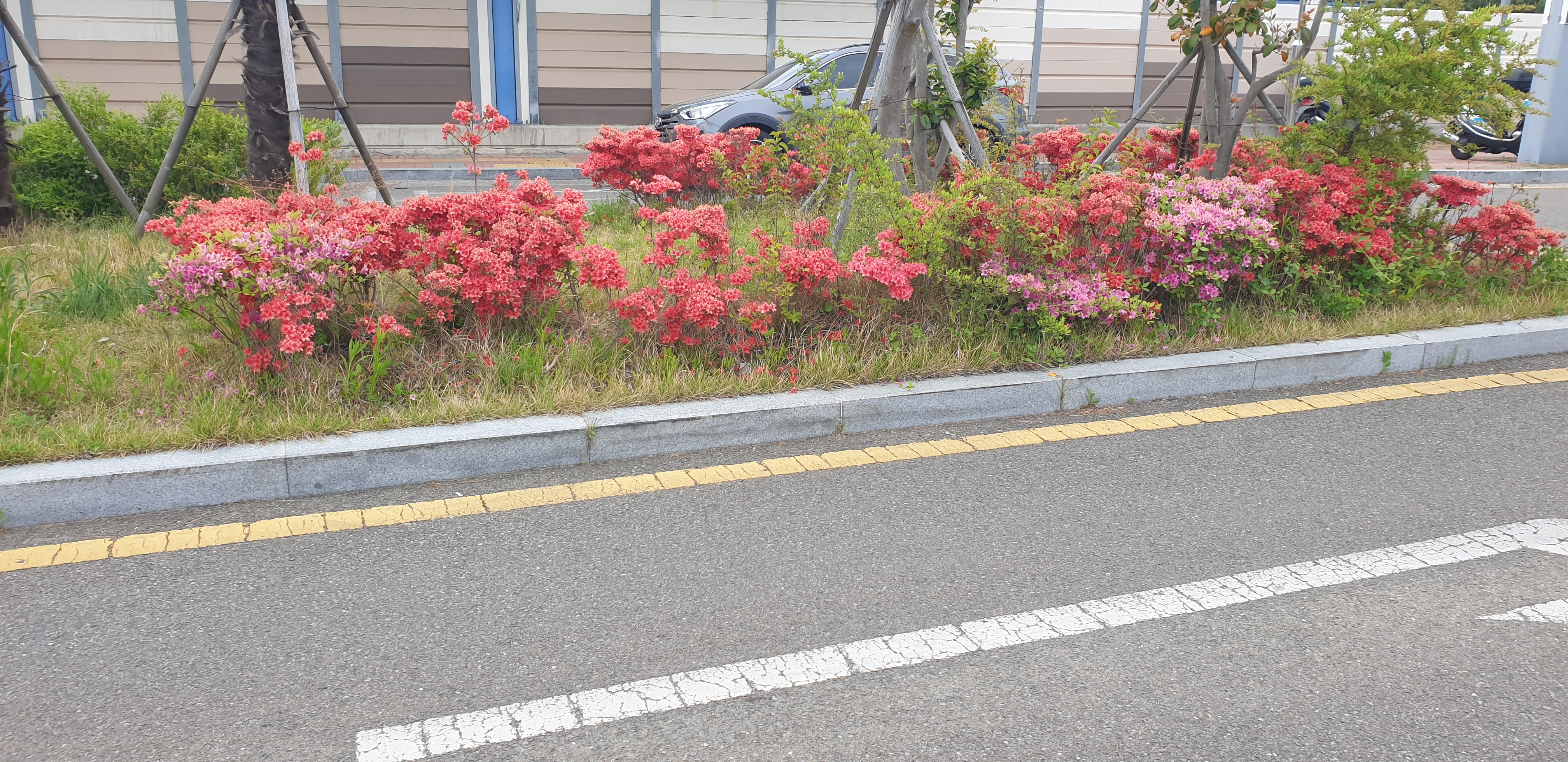문득 그 옆에 만발한 흰 철쭉을 본다.