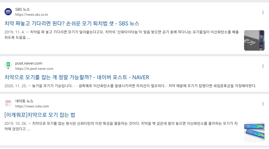 여기는..화학반응을 소개하면서.. 그 치약의 성분이.. 실제로 이산화탄소를 만들기 위해선 자외선이 필요하기에.. 모기가 설치는 밤에는 결코 활성화되지 못하기에 엉터리라는 주장..