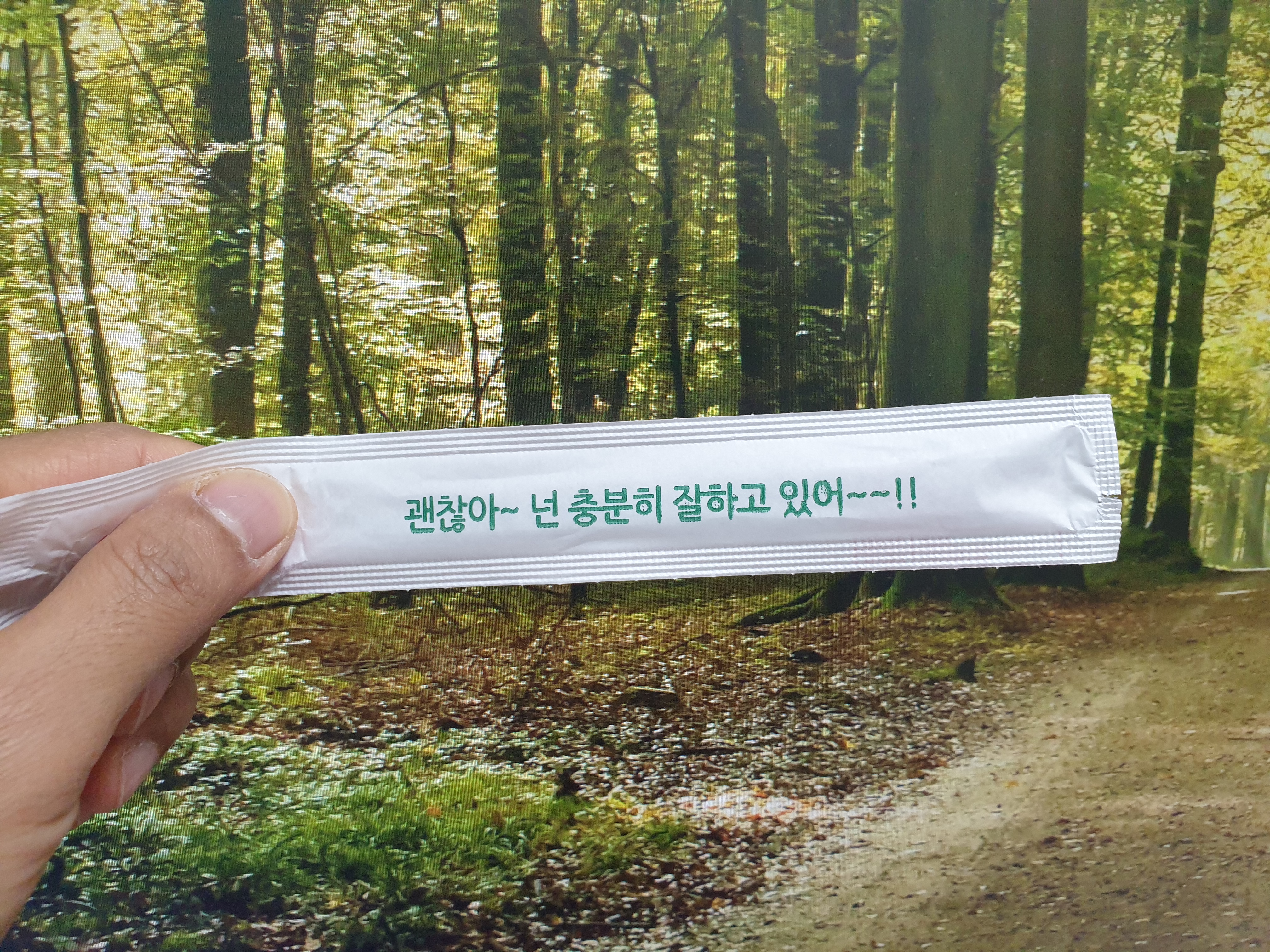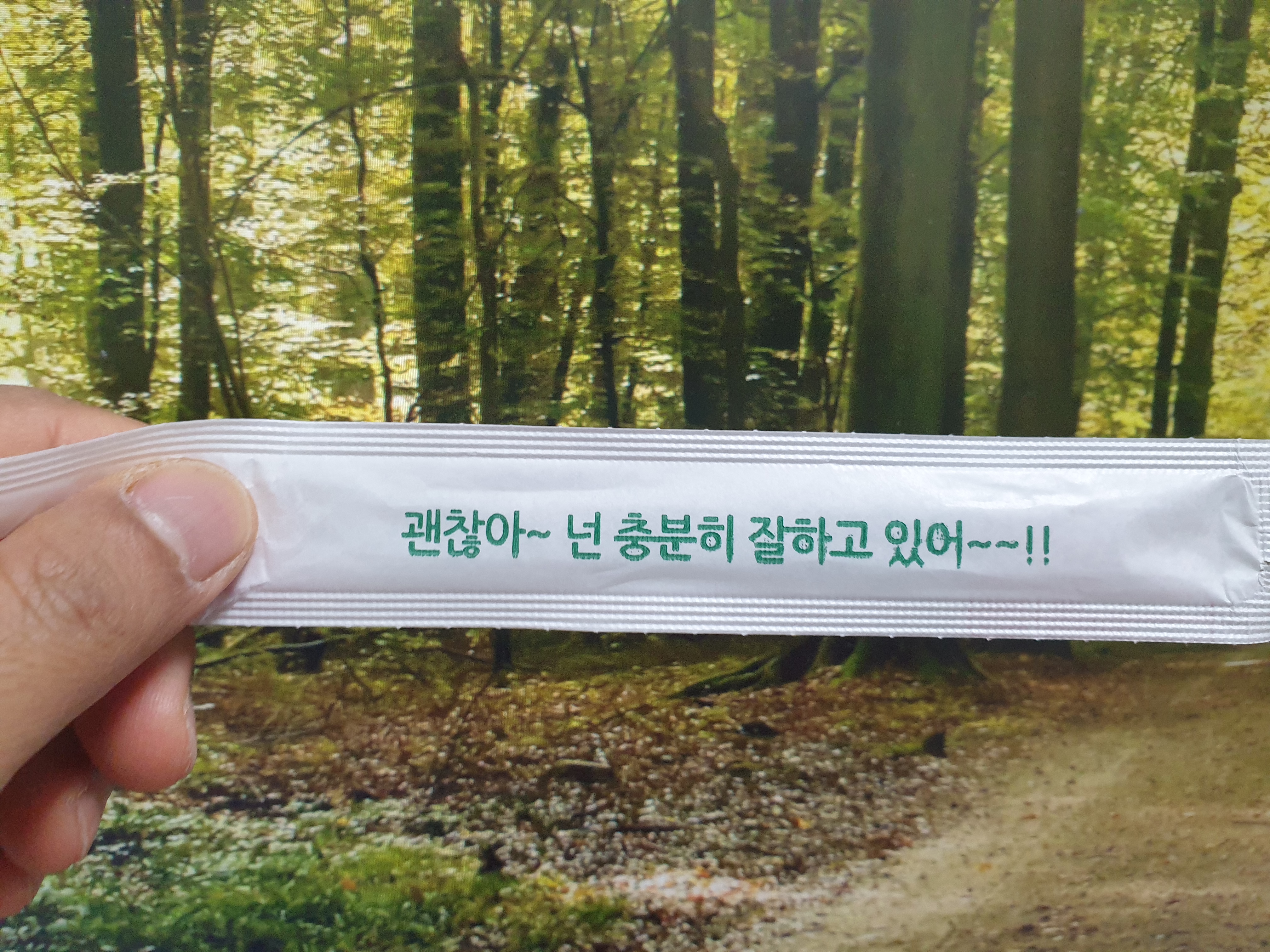 문득, 나무젓가락 포장지의 글귀가 눈에 들어온다.