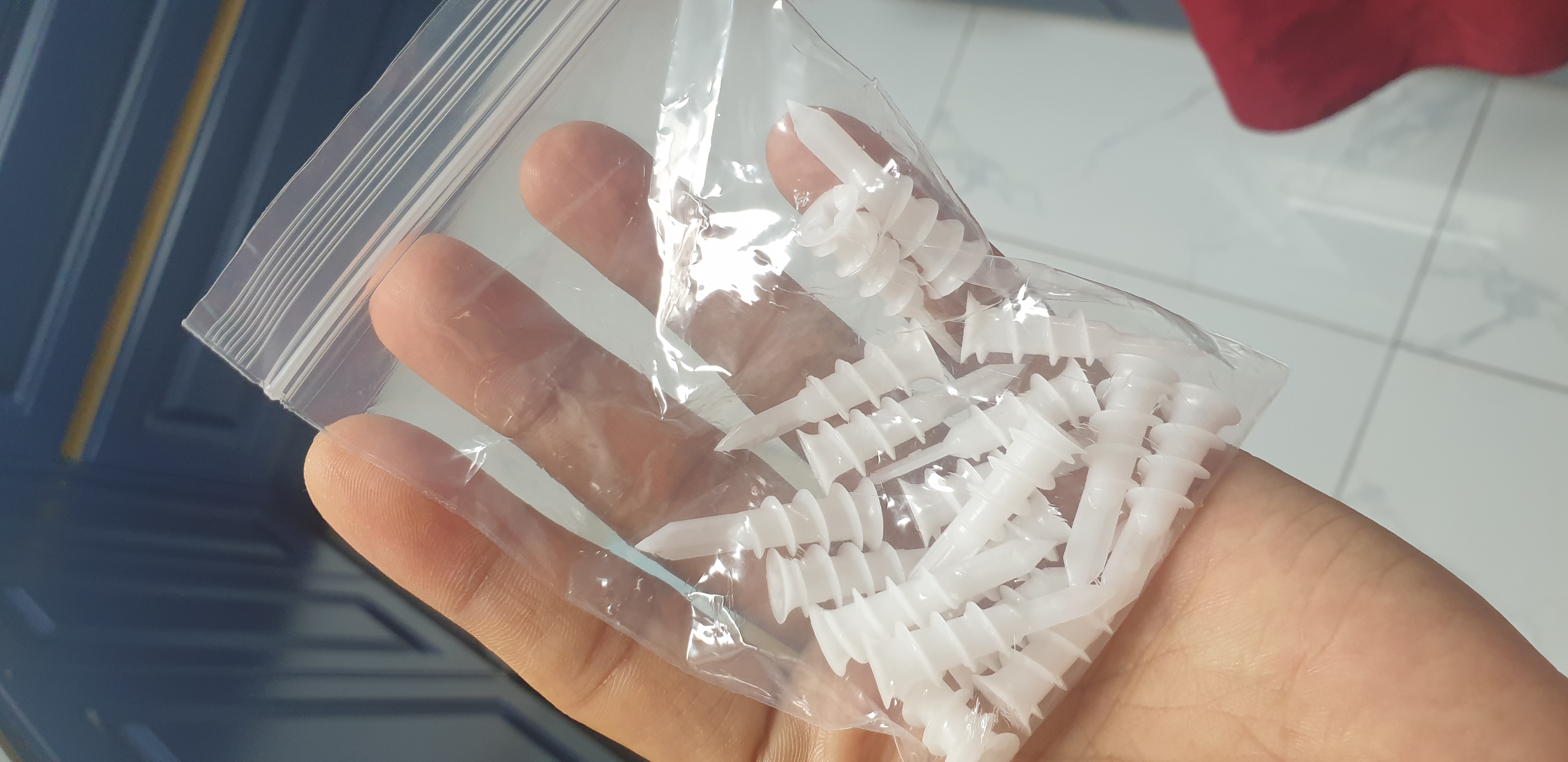 나사를 풀어내고, 그 상태 그대로 요 피스를 그 간격을 통해서 밀어넣어서, 가느다란 드라이버로 나사 구멍을 통해서 앙카를 고정을 할 수 있다.