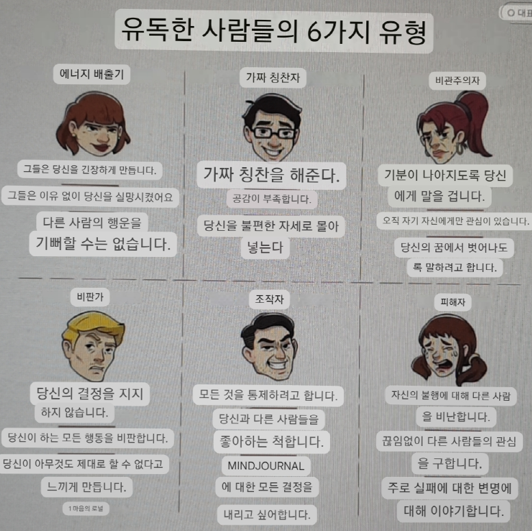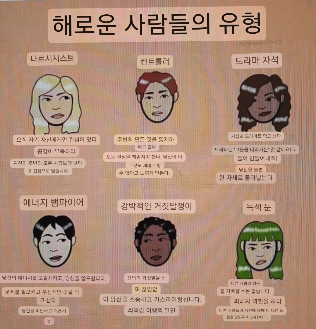 이런 독소인간들의 유형을 좀더 잘 이해할 수 있게 되었다.