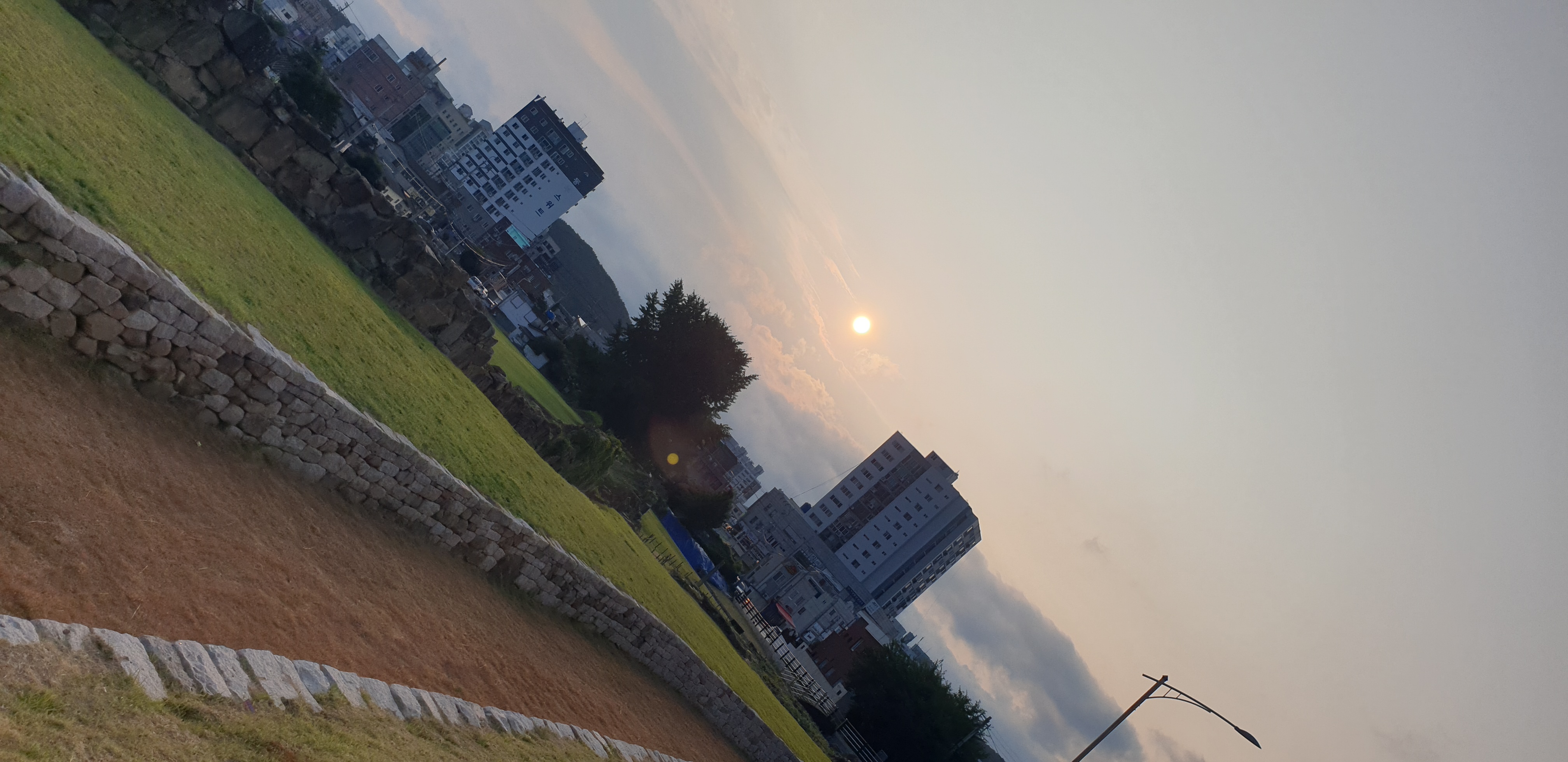 출근하면서 .. 해를 보니, 지평선에 구름이 걸쳐져 있다.