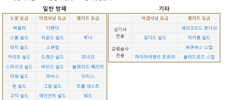 비슷하게 생겼지만, 이름에서 다르듯, 등급이 다르다. 그래서, 가능한 구멍의 갯수도 다르다고 한다. .. 그동안 몰랐다. 4솟 방패를 목표로 한다면, 사냥하면서 떨어지는 카이트 방패를 줍을 필요가 하등없었다.