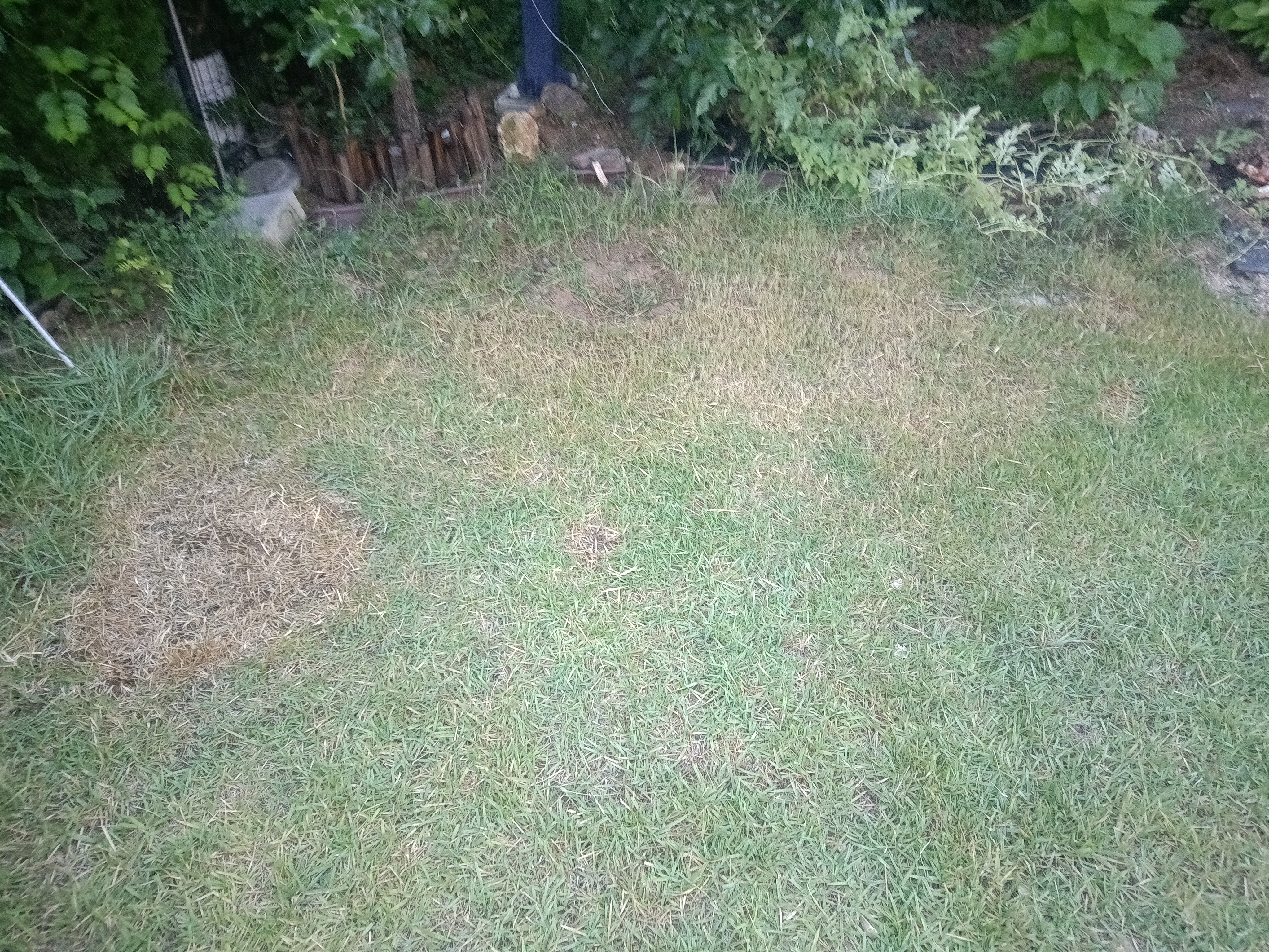 다음날 보니, 역시나 잔디가 높게 자란 곳은 이미 누렇게 잔디가 많이 죽어 있다.