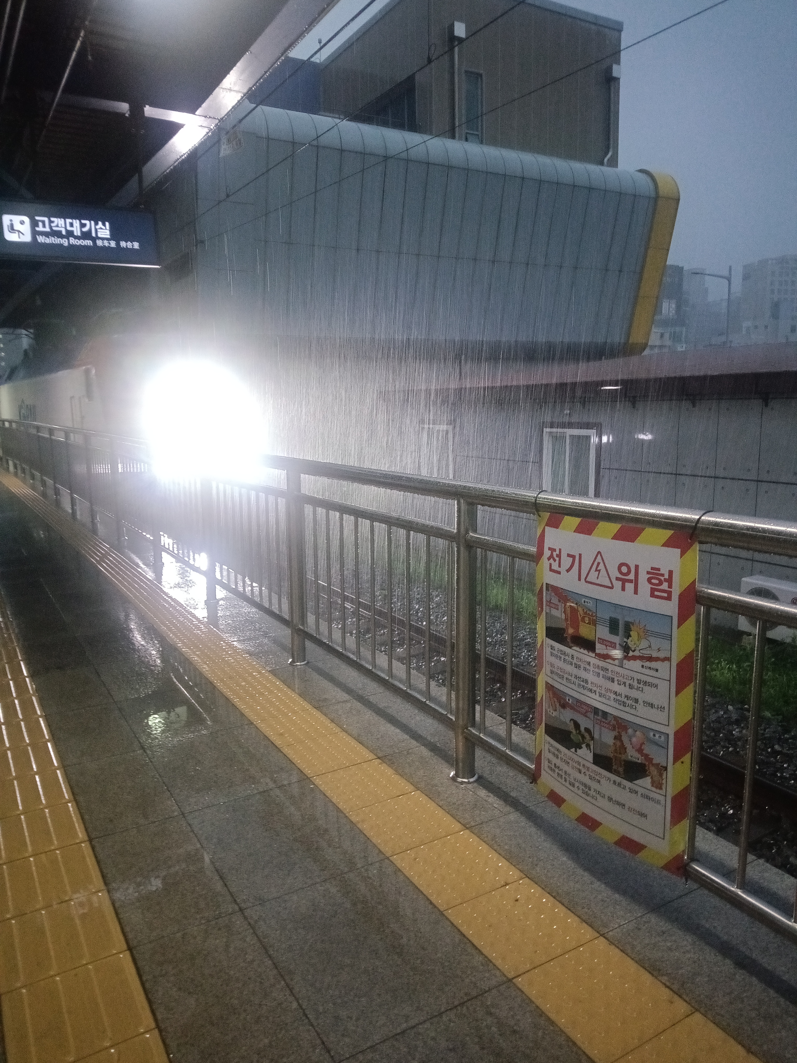 이윽고 강풍이 몰아치면서 빗물이 스테이션 안으로도 몰아쳤다.