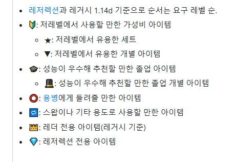 졸업템을 알아야 한다.(물론 그것은 목표고, 보통은 가성비 아이템이라도 챙겨야 한다)