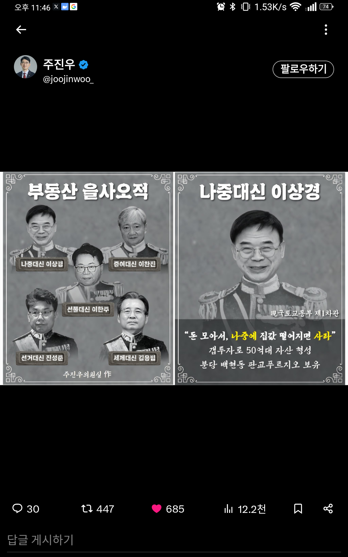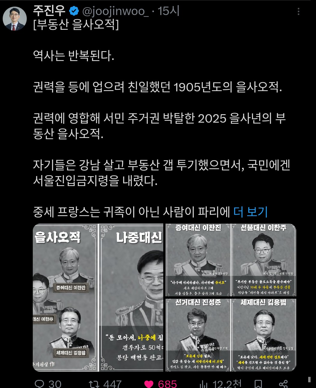 카테고리 없음 조국이 속상한 이유.. by 도움이 되는 자기 2025. 10. 23. 728x90 내로남불의 끝판왕들이..어디서 저리 무데기로...구데기처럼 숨어있다가 기어나오는지.. 너희와 난 달라. 너희는 집 사지 마라..돈 많으면 피곤해.. 조국도 파렴치 잡법인데...깜방갔다왔는데..이 내로남불 구데기들은... 떵떵거리고 잘 산다.. 공유하기 게시글 관리 도움이 되고픈 자기의 일기