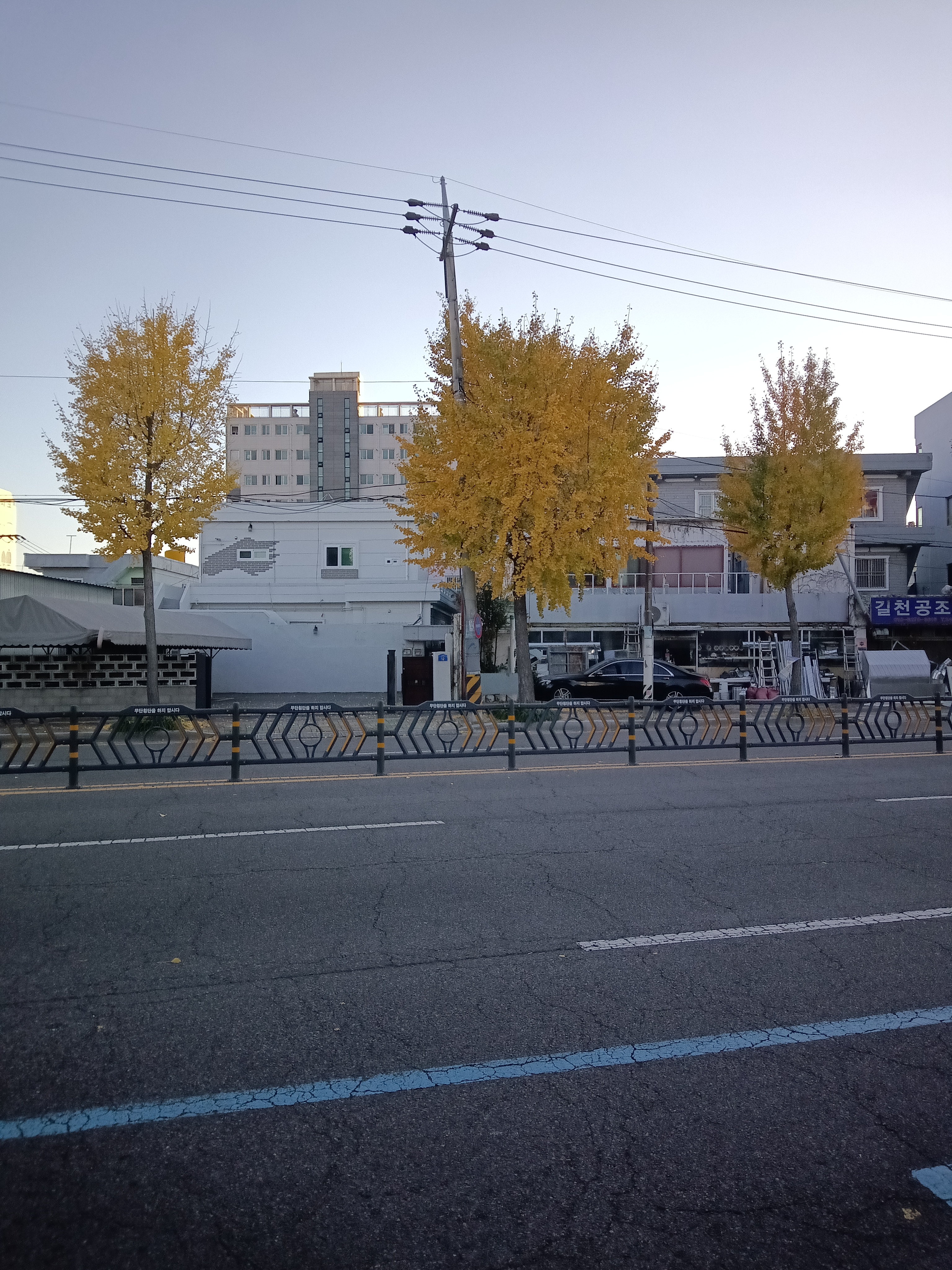 퇴근길의 정류장 앞에는 은행나무가 즐비하다.