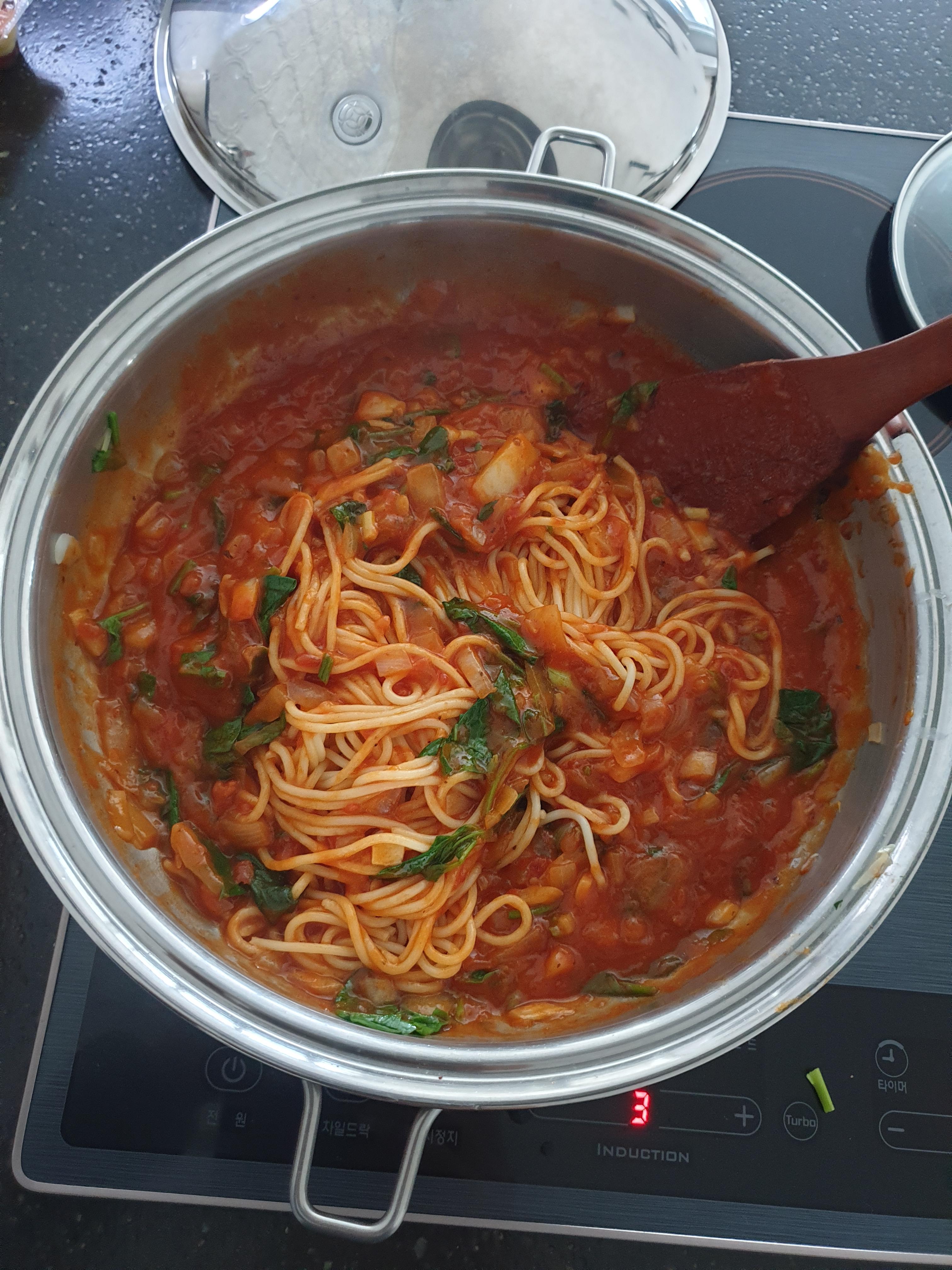 반 자급자족 시금치 스파게티 3편(플레이팅, 품평)