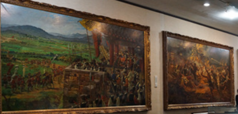단지 전운이 감돌뿐인... 일본적장과 동래부사 송상현과 대치하고 있는 그림만이 아니라.. 좌우로는.. 죽음이 아로새겨지는, 참혹한 전쟁의 장면들이 많이 있다.