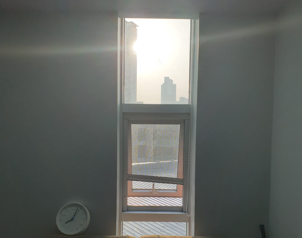 아침의 큰 아파트 건물들이 해시계로 쓸 수 있는 걸 보니..