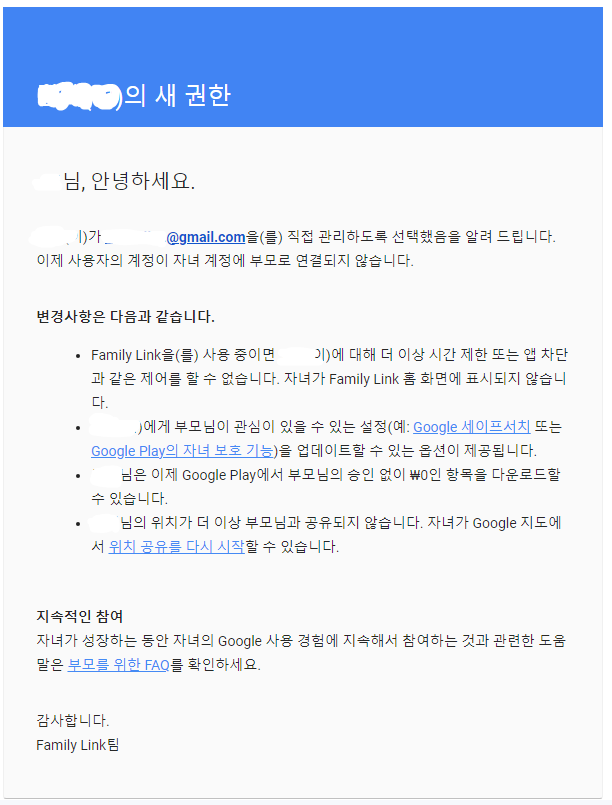 곰지의 패밀리 링크가.. 해금 解禁 되었다는 소식이었다.