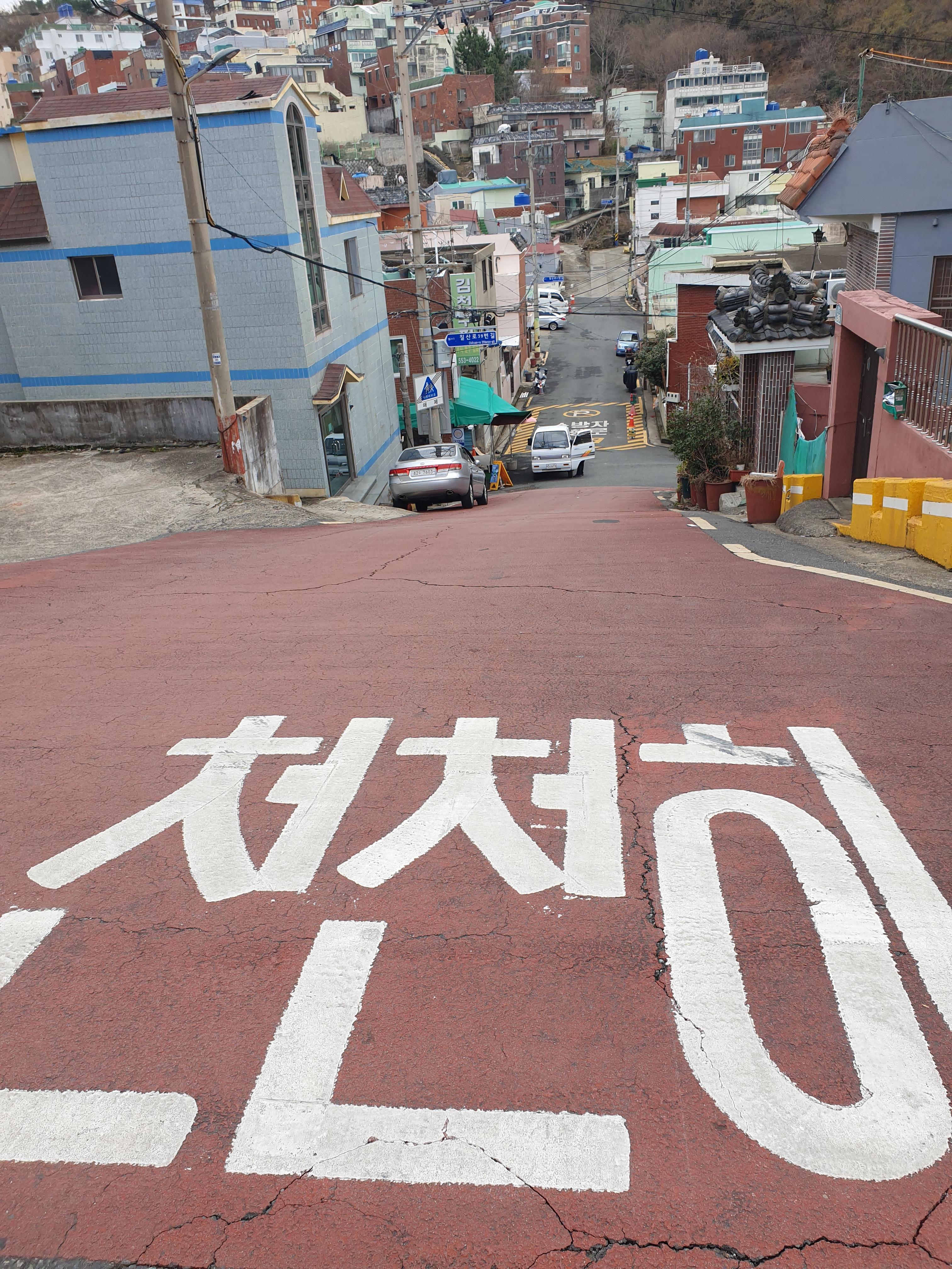 산을 인접하여, 가파른 경사길을 따라서, 다닥 다닥 작은집들이 옹기종기 모이고,