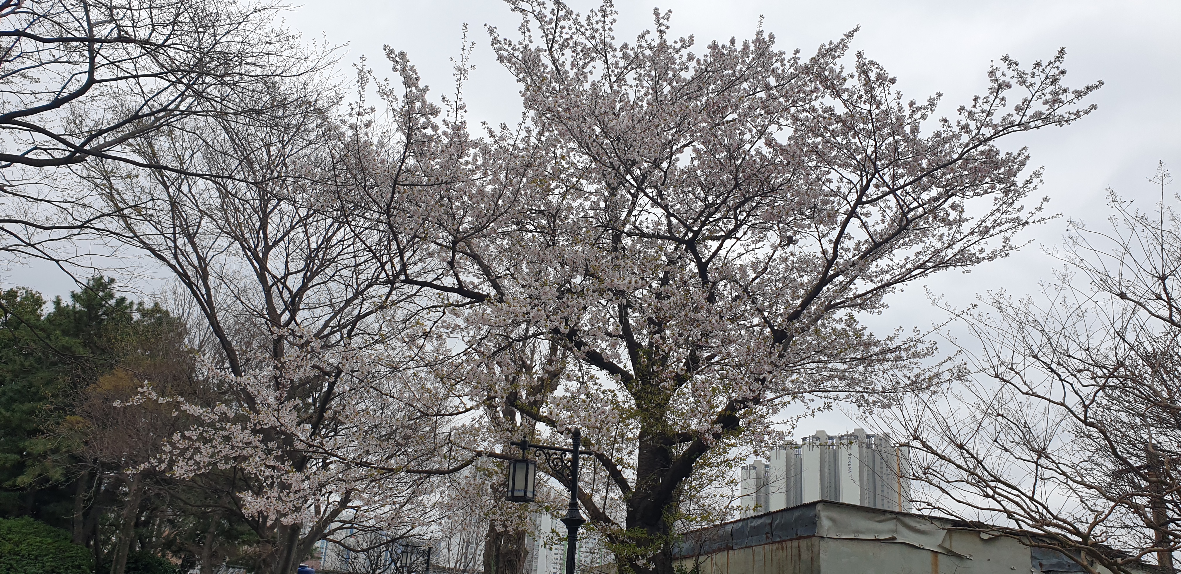 뒷쪽에.. 올벚나무, 앞에는 왕벚나무..