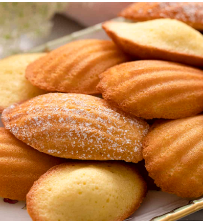 | 프랑스가 원산지인 과자로, 카스텔라와 비슷한 맛이 난다. 기본적으로는 조개 모양의 틀로 구워서 사진과 같이 조개 모양으로 굽지만, 사용한 모양틀에 따라 다양한 형태가 존재한다 로렌 공국의 공작으로 망명온 폴란드-리투아니아 스타니스와프 1세 레슈친스키의 전속 요리사 마들렌이 만든 조개빵이 루이 15세 왕비 마리아 레슈친스카에게 전해지면서 프랑스에 전래되었다. [출처: 마들렌 -나무위키] |