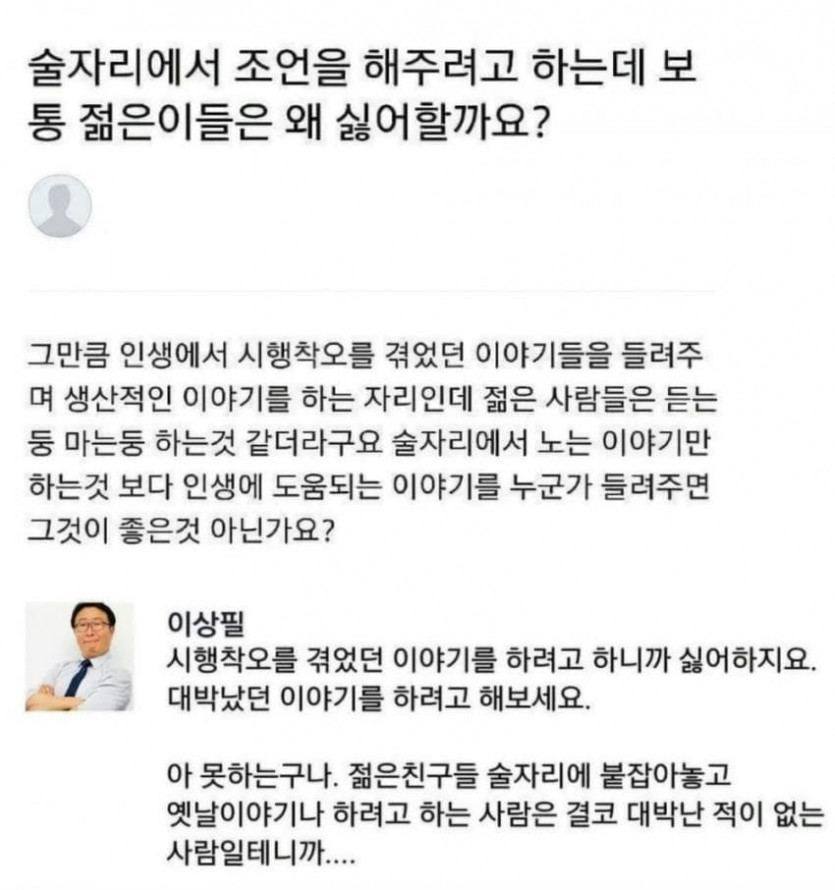 젊은이들과는 접점이 부족하니.. 서로의 이해를 위해서라도..