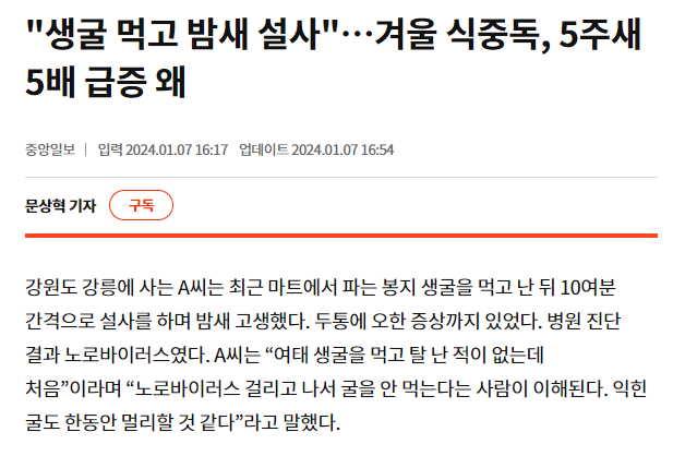지난 겨울에 가족들이 생굴먹고.. 응급실까지 가고..