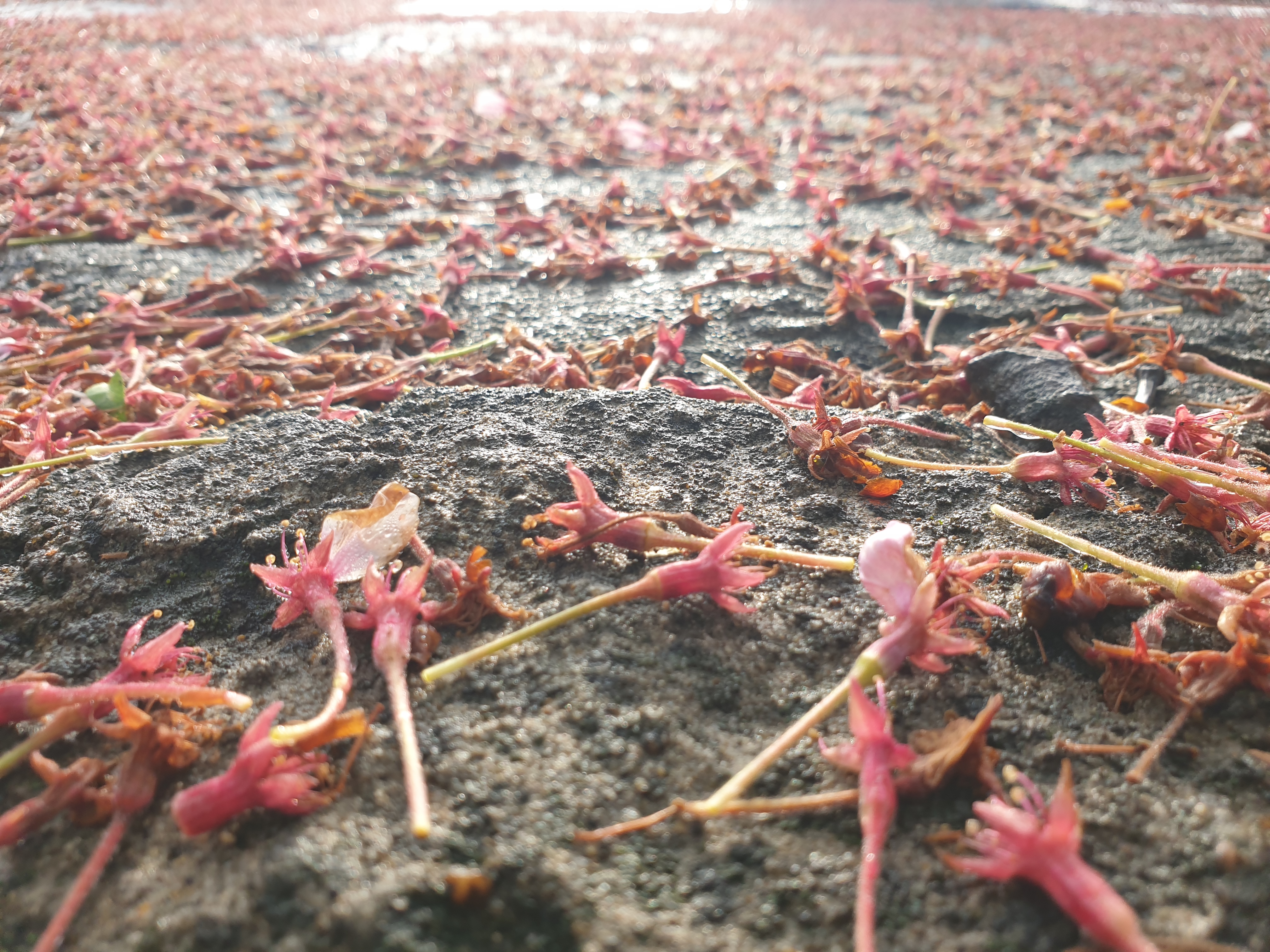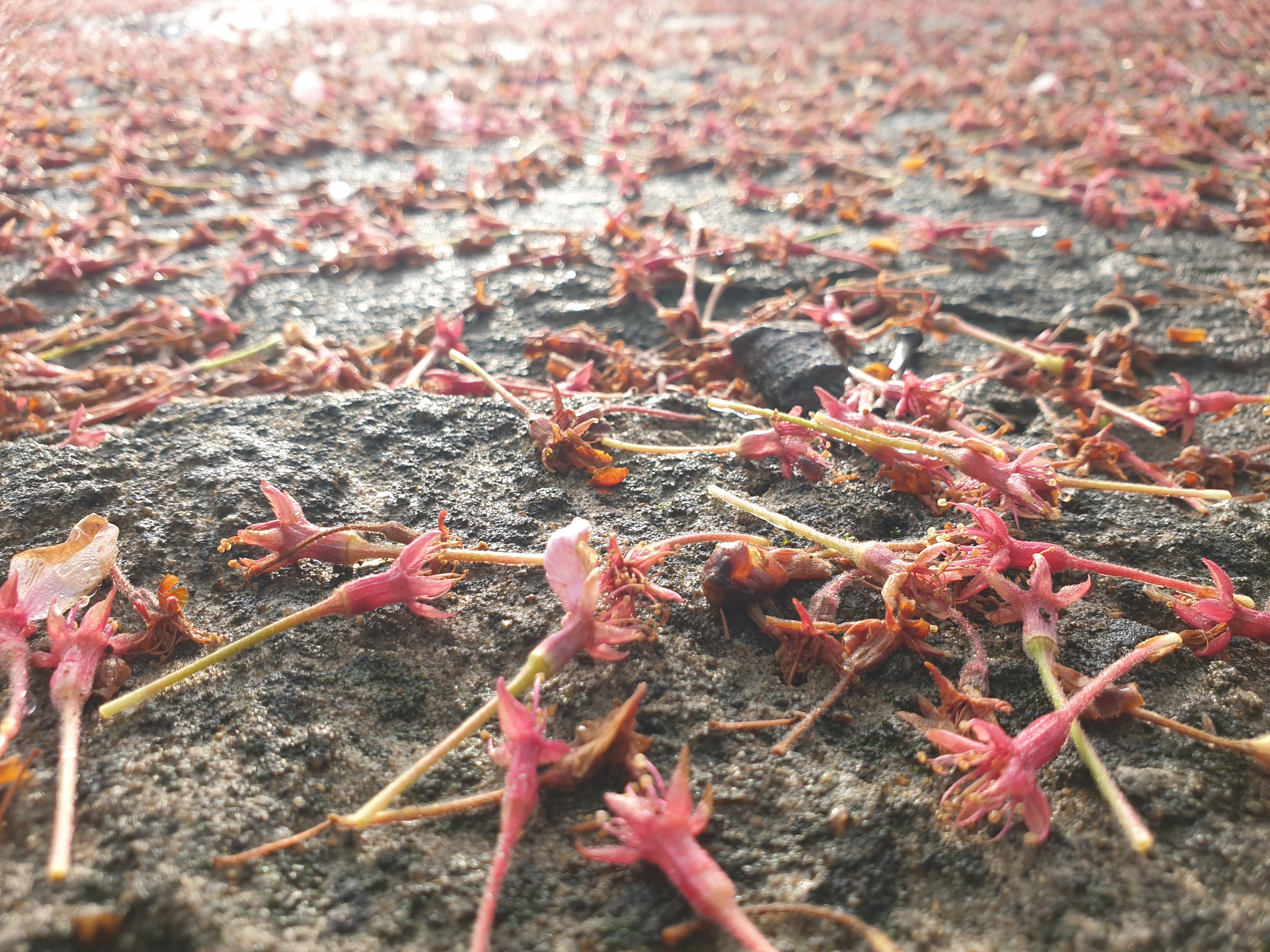 거진 다 떨어져, 바닥에 나뒹군다.