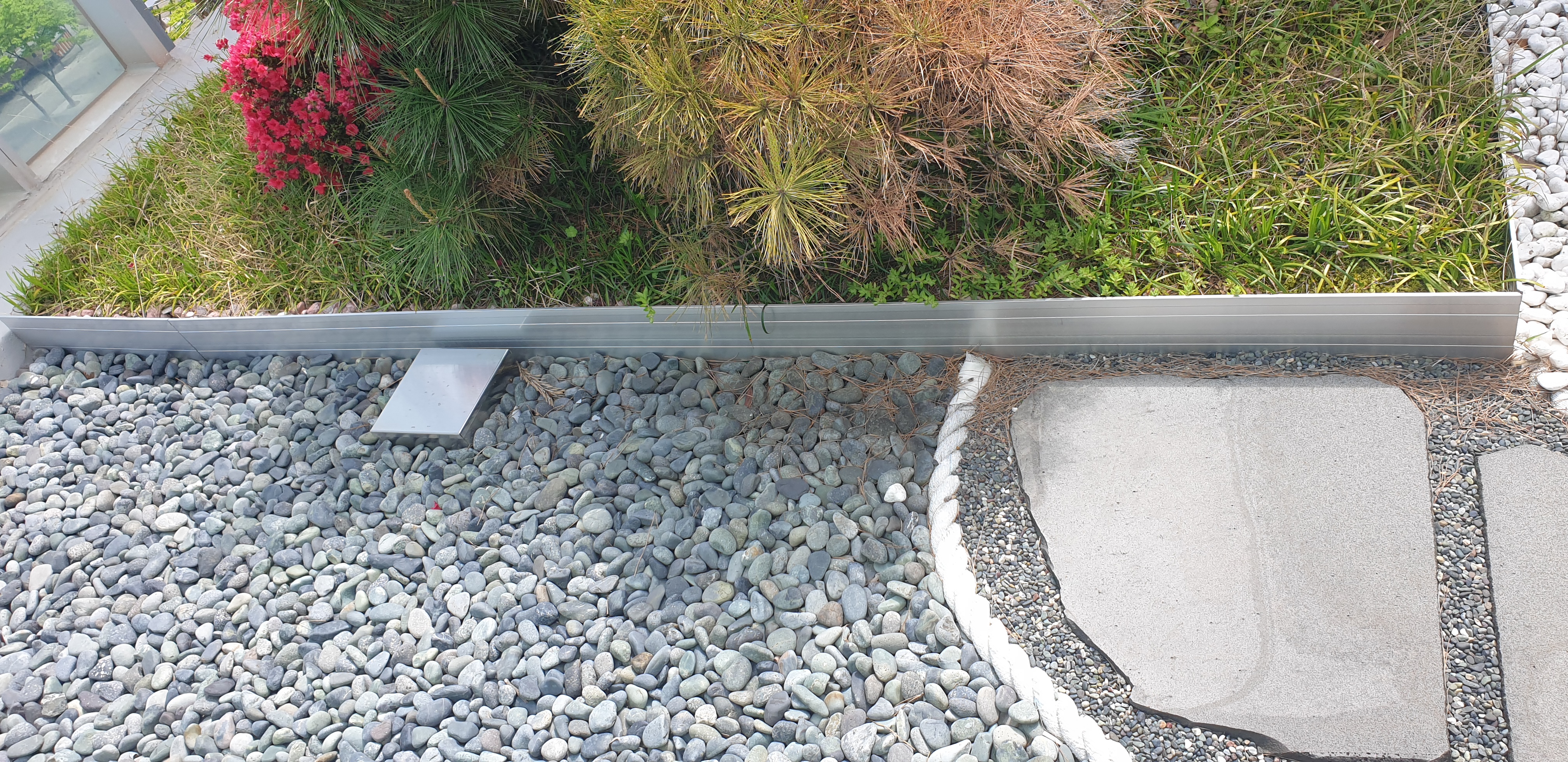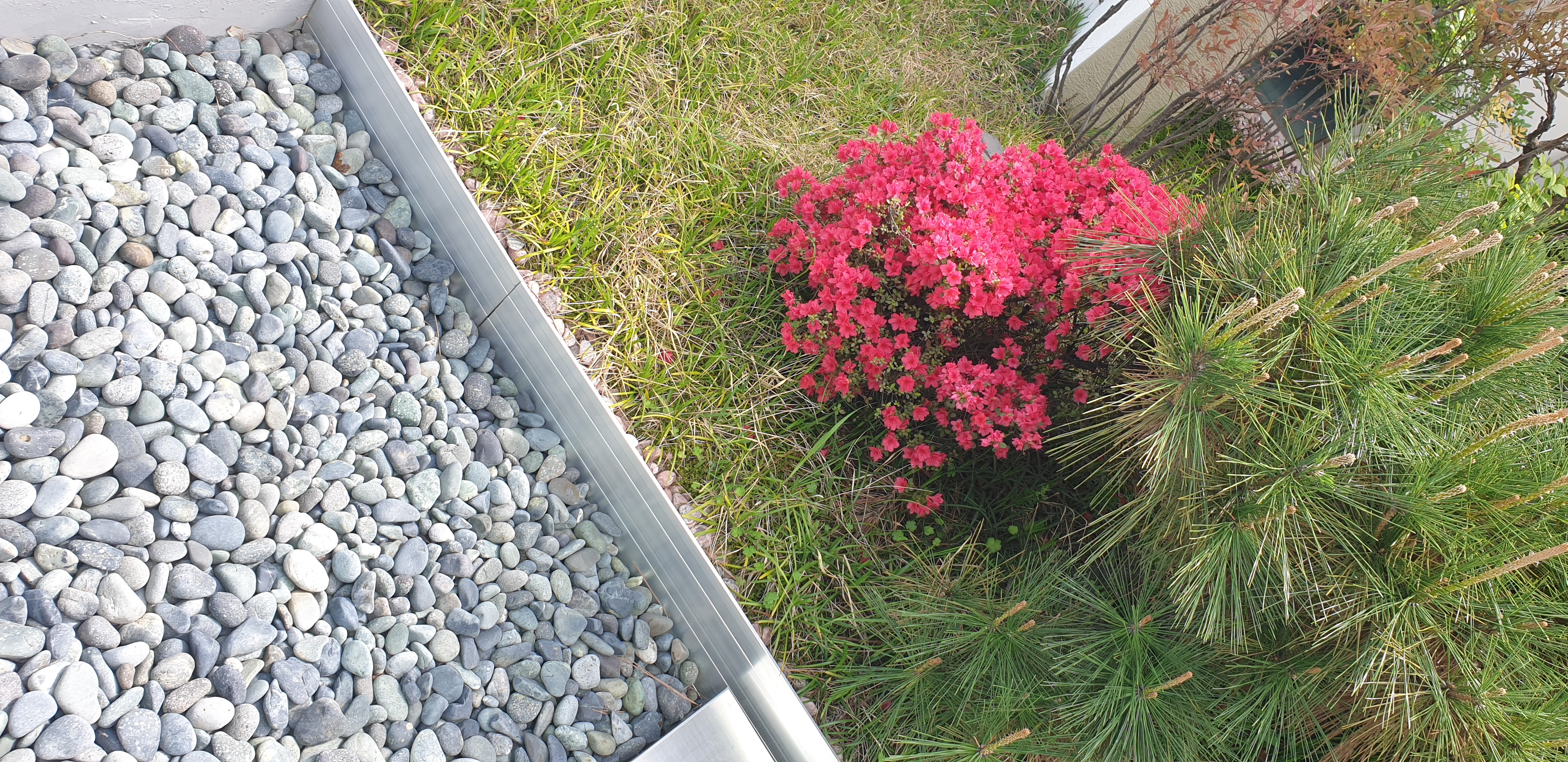 문득.. 중정의 나무들, 저 뒤에 숨은.. 연상홍이 얼핏 보여서...