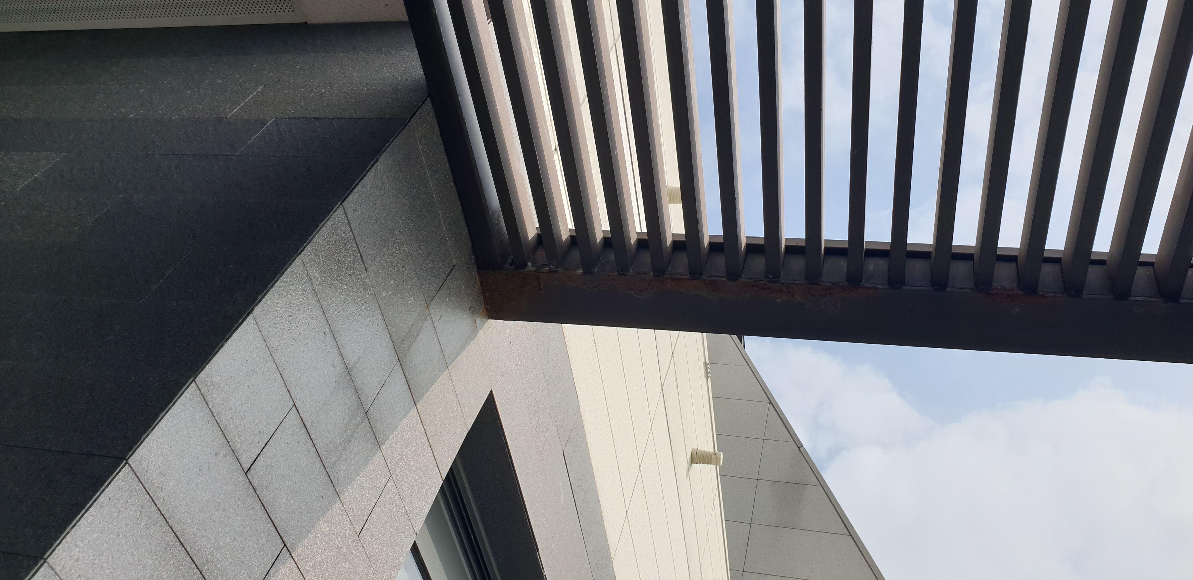 제아무리 전문가가 (완벽하게) 돌벽에 철제구조를 고정하는 시공을 해도.. 돌 벽에 연결된 부위만은 어쩔 수 없는 한계가 있다. 서로에게 손상을 주고.. 그리하여..녹이 스며들 수 있는 가장 취약한 부분이 된다.