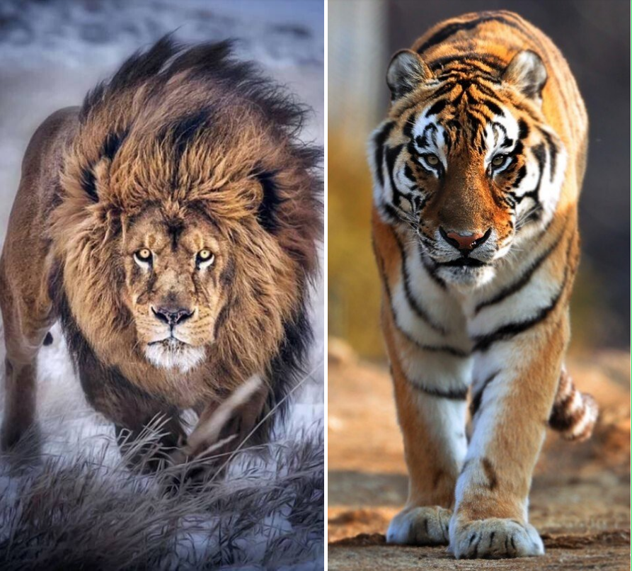 사자와 호랑이는 겉모습으로는.. 털이 모양 때문에 많이 다르다.