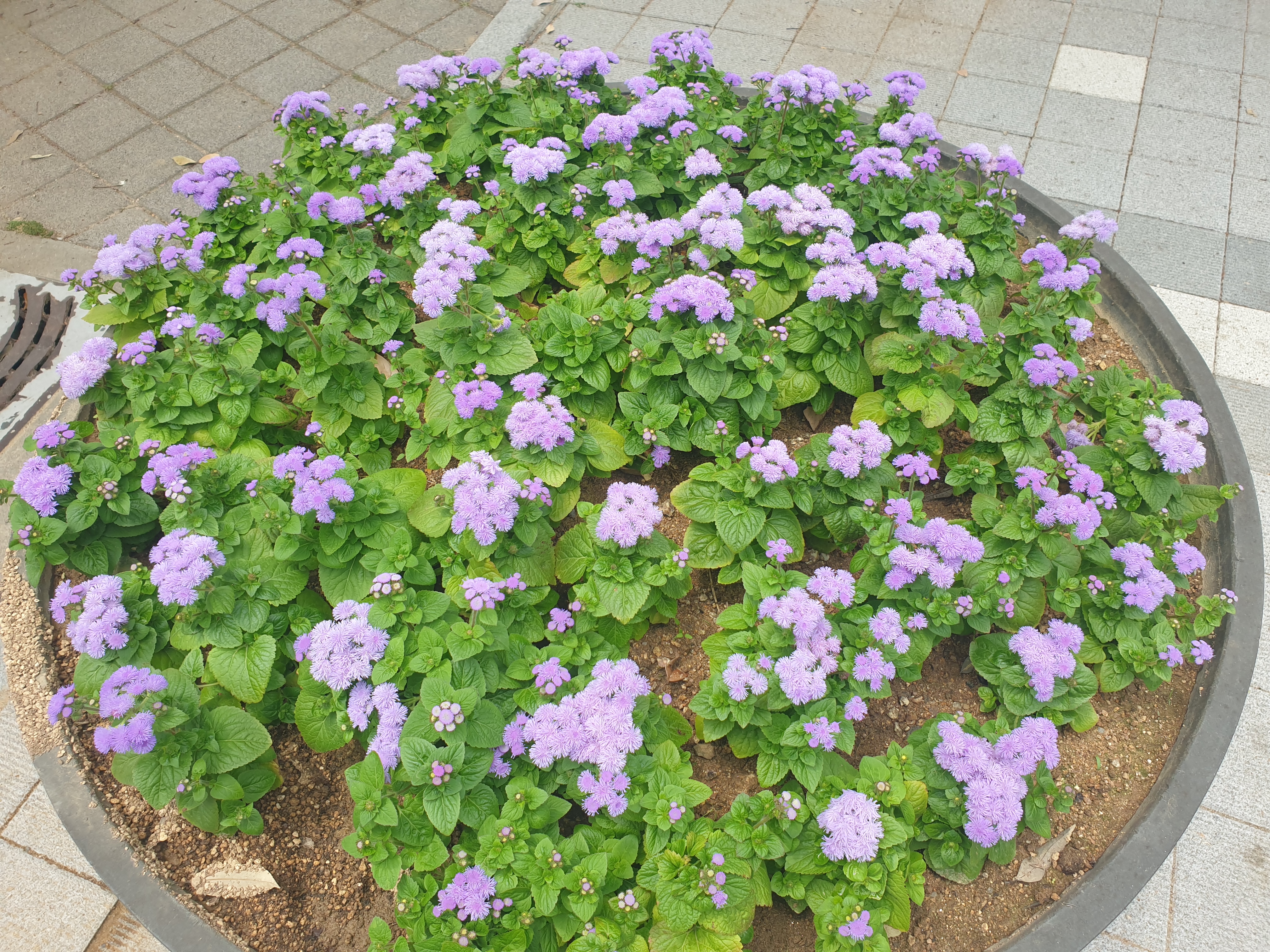 아게라텀(Ageratum houstonianum)은 그리스어로 나이를 먹지 않는다 늙지 않는다는 뜻에서 유래.. 불로화(不老花)로 불리는 것은 초여름에 개화한 꽃이 늦가을까지 계속해서 피는 있어 늙지 않는 꽃이라 하여 붙여졌다. 솜털처럼 부드러워 "풀솜꽃"이라고도 불리며, 멕시코엉겅퀴 라 불린다.