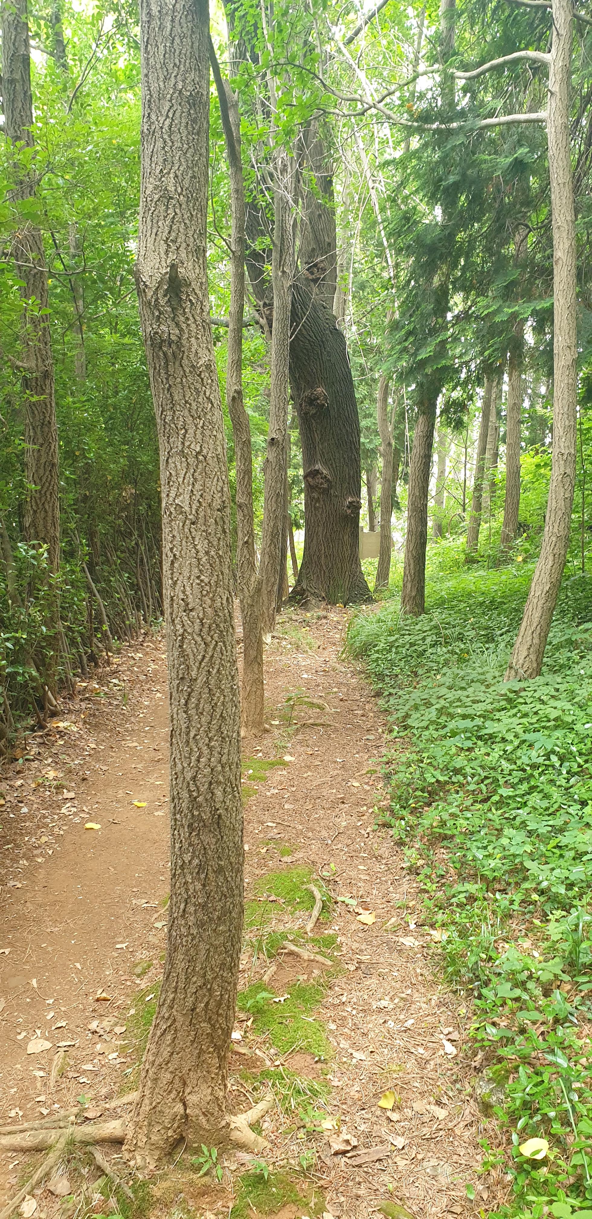 아마도.. 길이 좁아서, 사람들이 경계에 있던 나무를 넘어서 다녀서 길이 더 생겼나 보다.