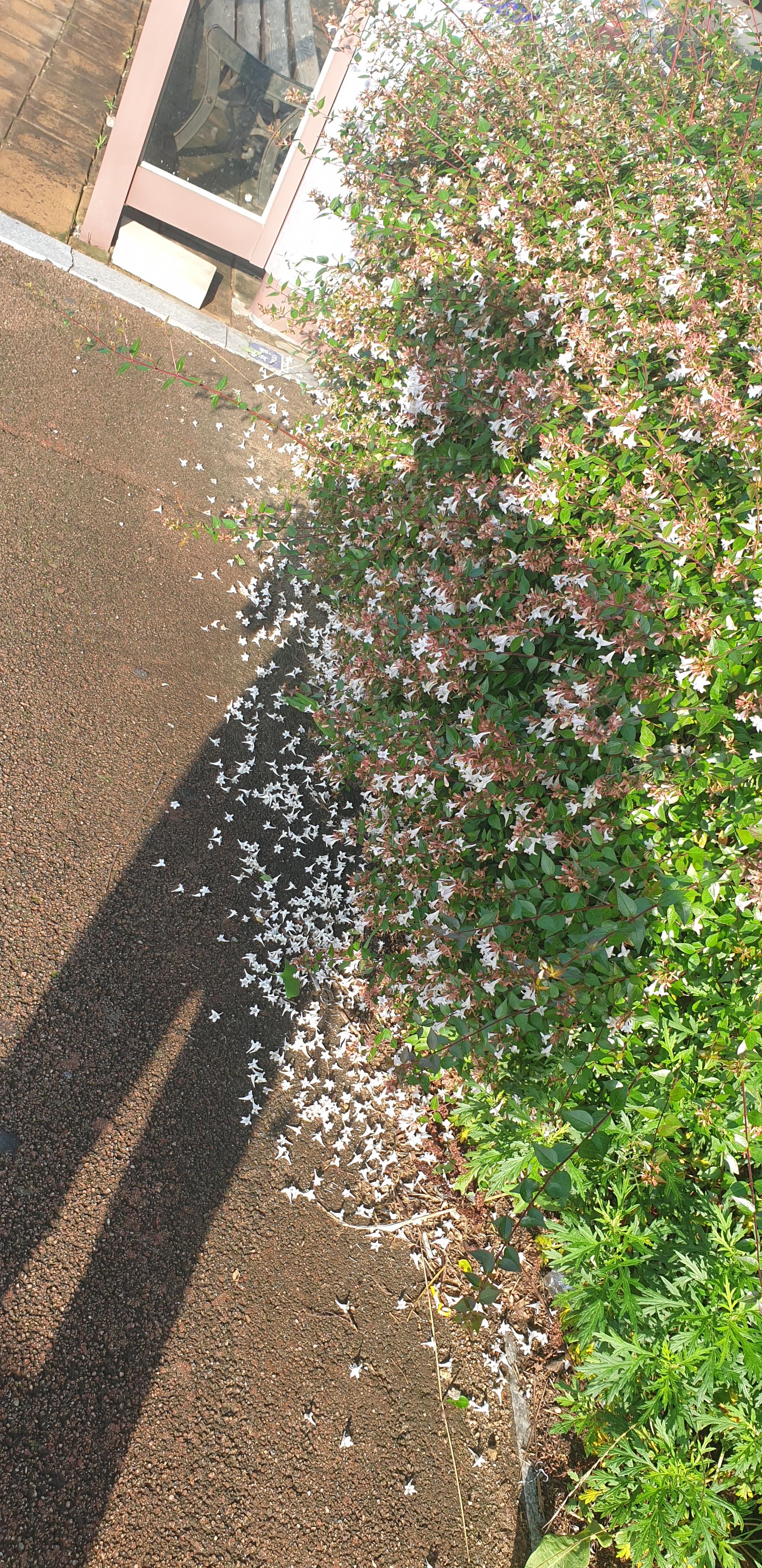 장마와 강풍으로.. 가로수, 꽃댕강나무의 꽃들이 우수수 떨어지는.. 피해를 입었지만,