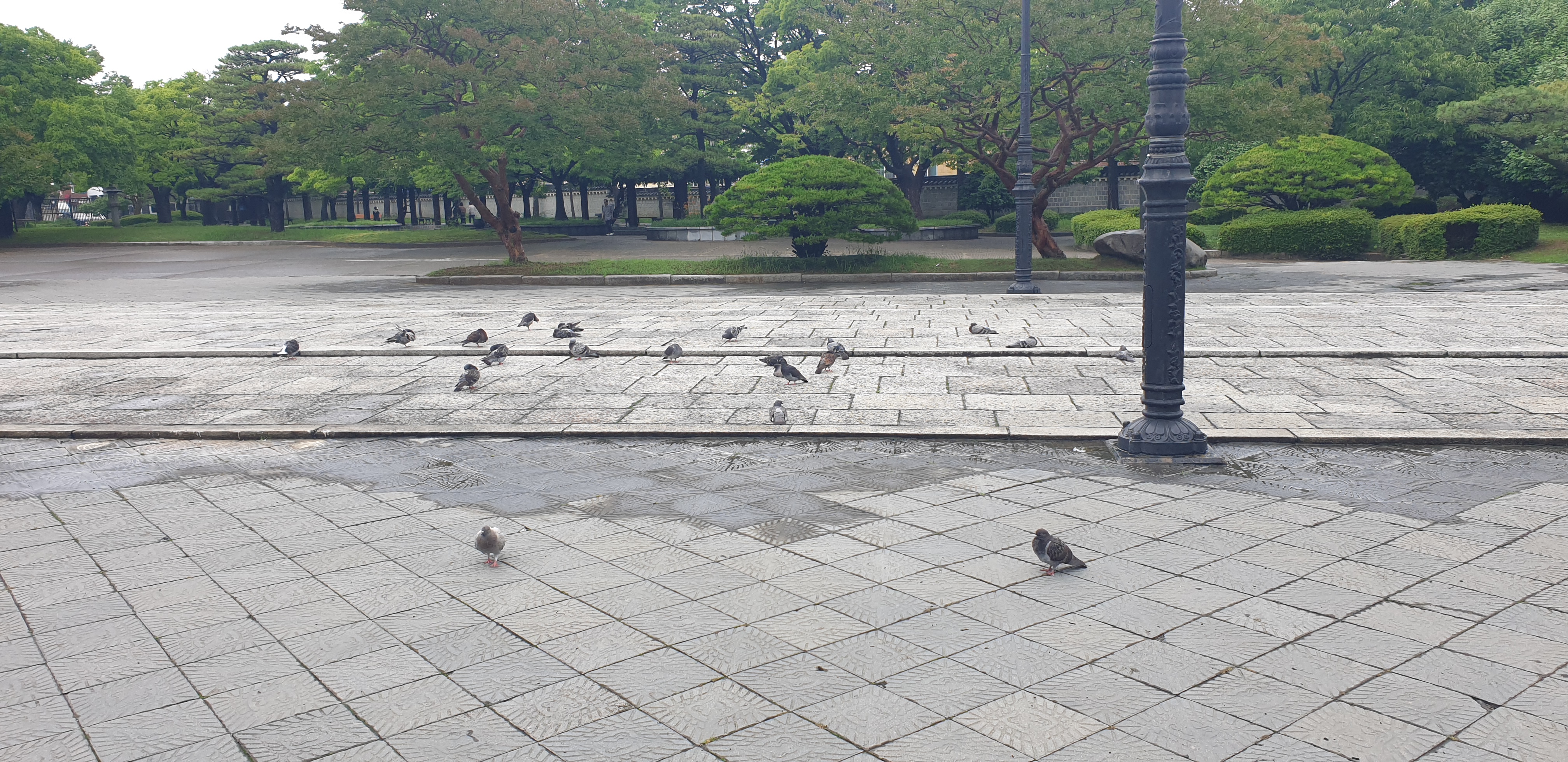 텅빈 공원에.. 가득한 비둘기 떼를 보니..