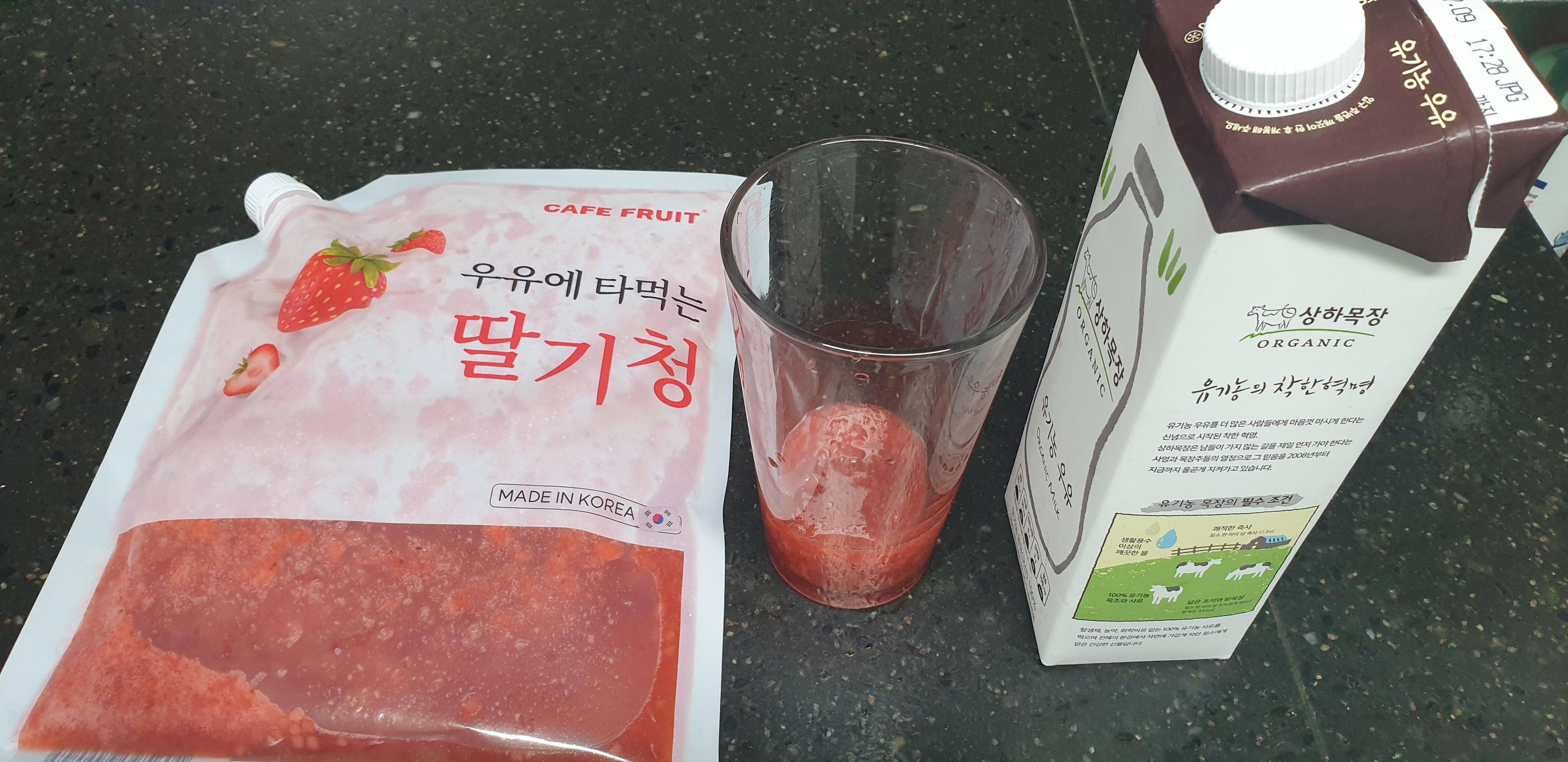 시원하고.. 달달한 딸기우유..