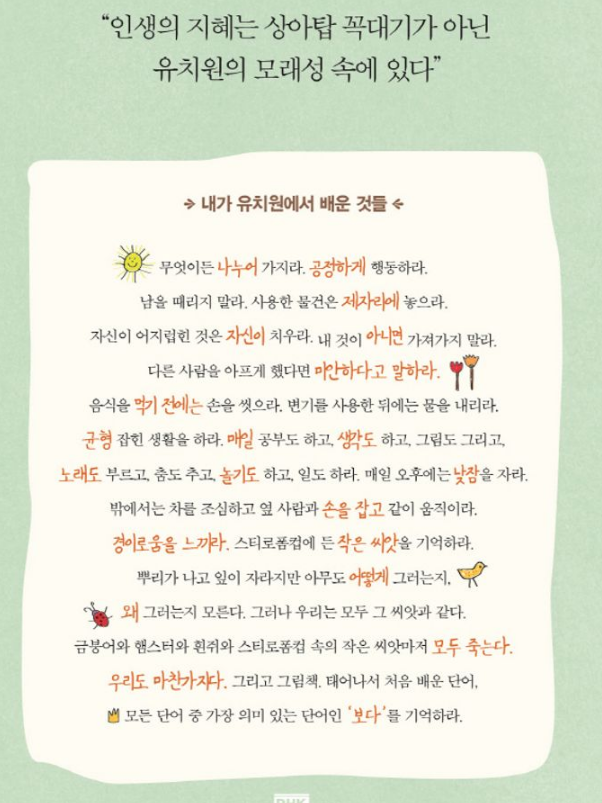 로버트 풀검의 책.. <내가 정말 알아야 할 모든 것은 유치원에서 배웠다>은 아주 유명한 책이다.