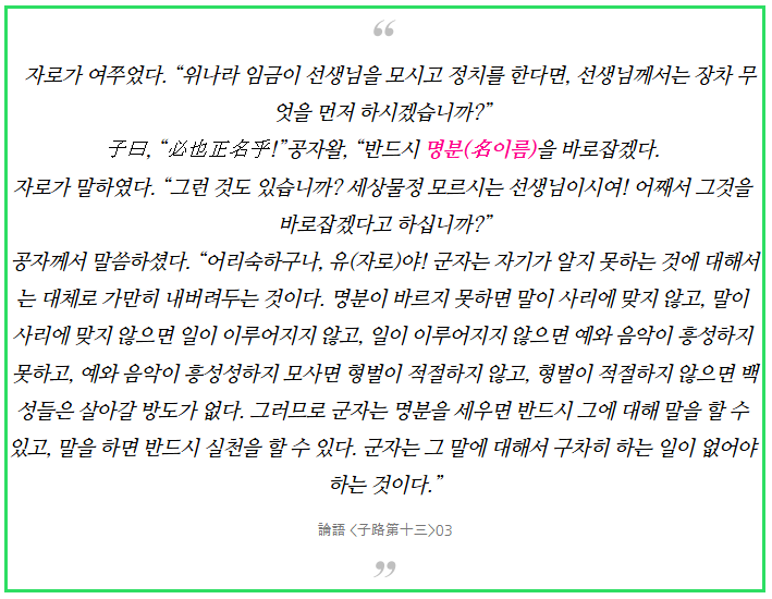 '정명론'이라고 하고, 이름보다는.. '명분'으로 해석되고 이해되지만..