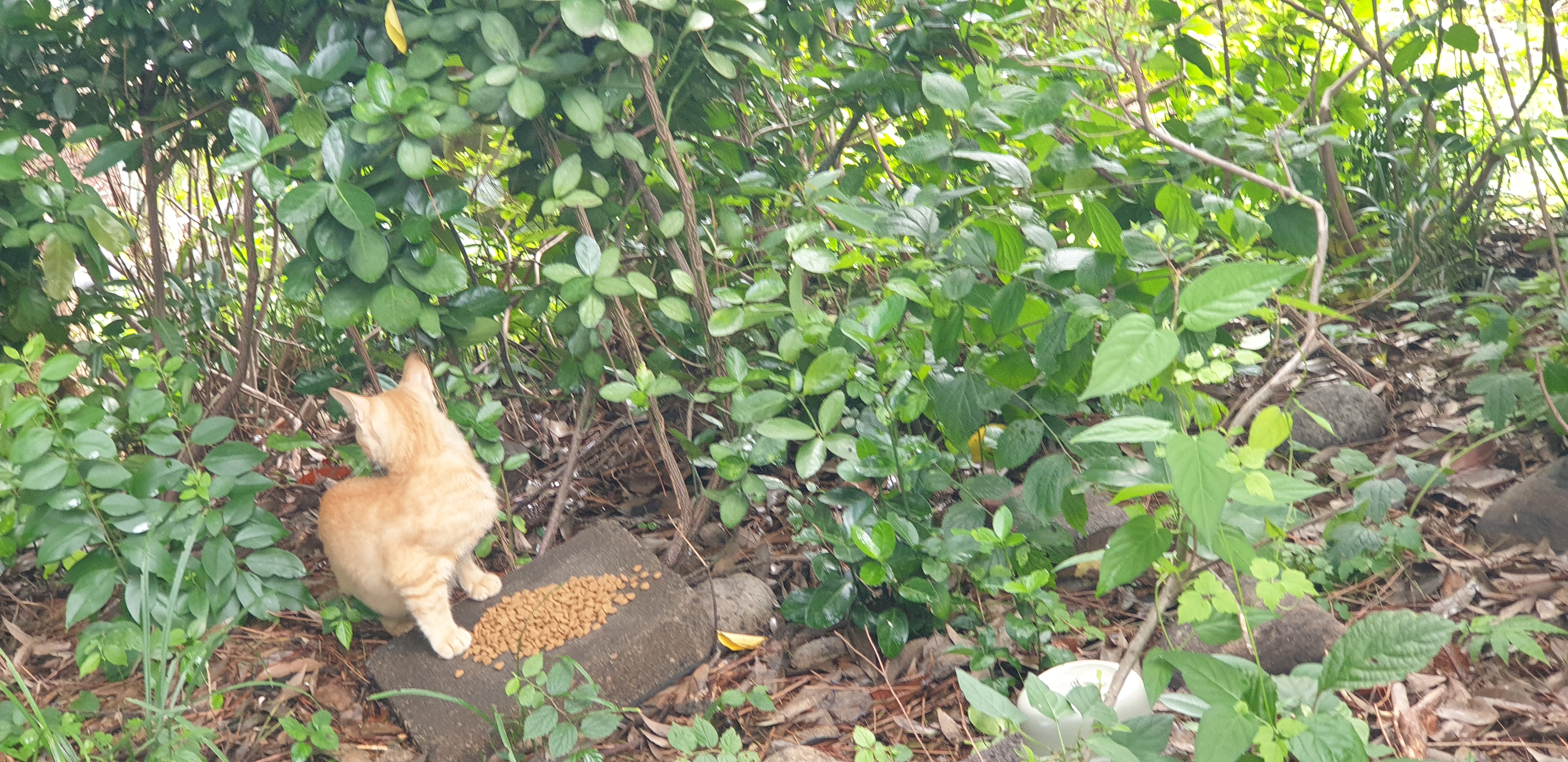 노랭이와의 처음 만남에도 ..자그마한 새끼가 배가 볼록해서.. 가여워서 먹을 것을 챙겨주기 시작했는데..