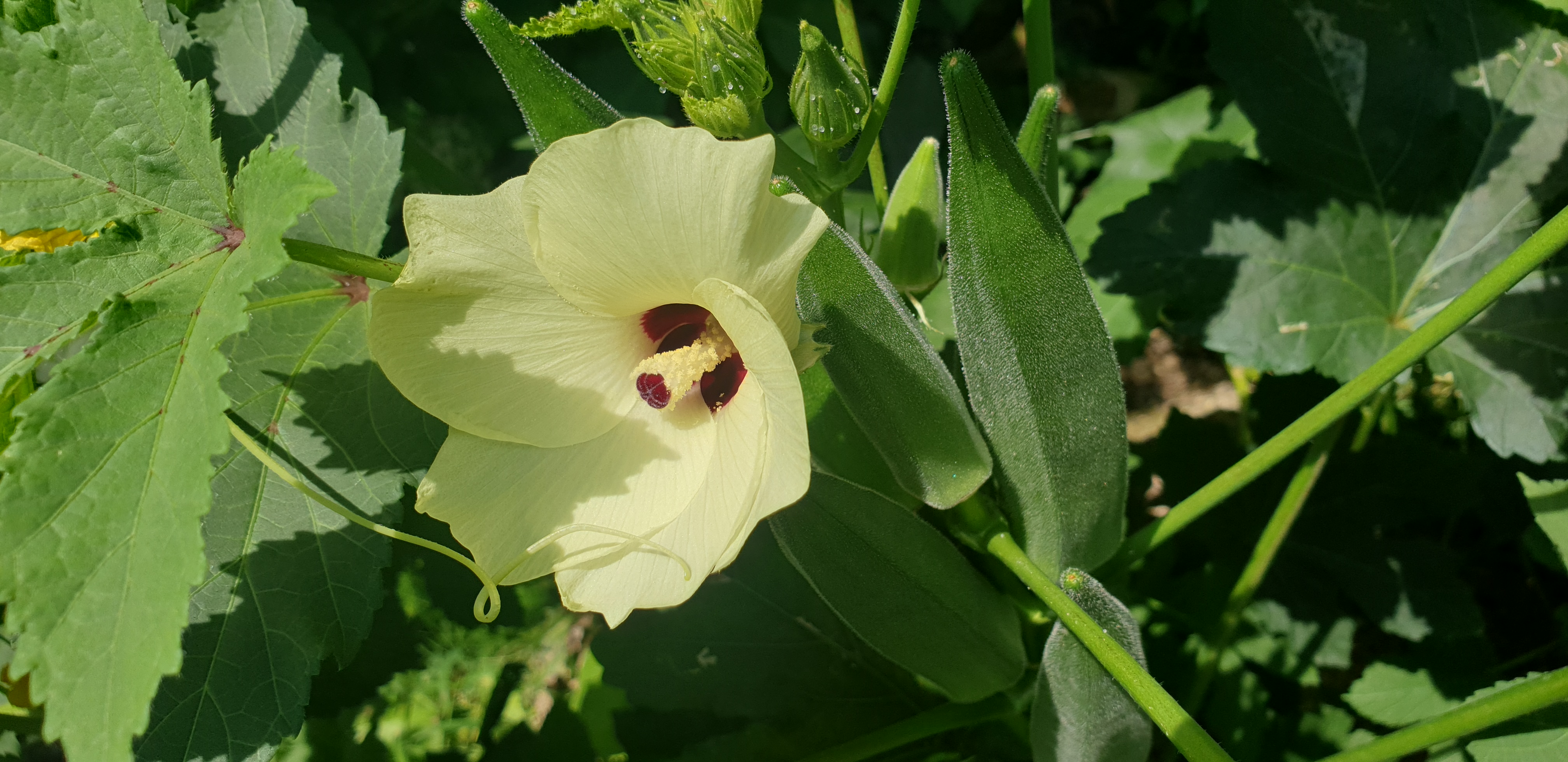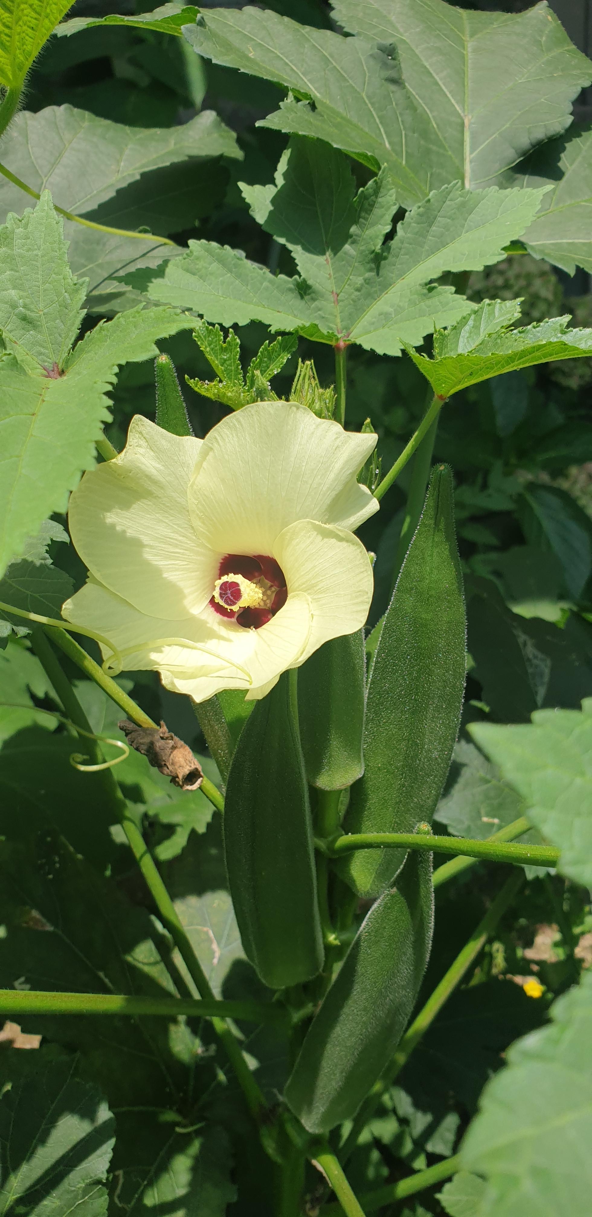 온전한 자태를 볼 수 없는 오크라의 꽃..