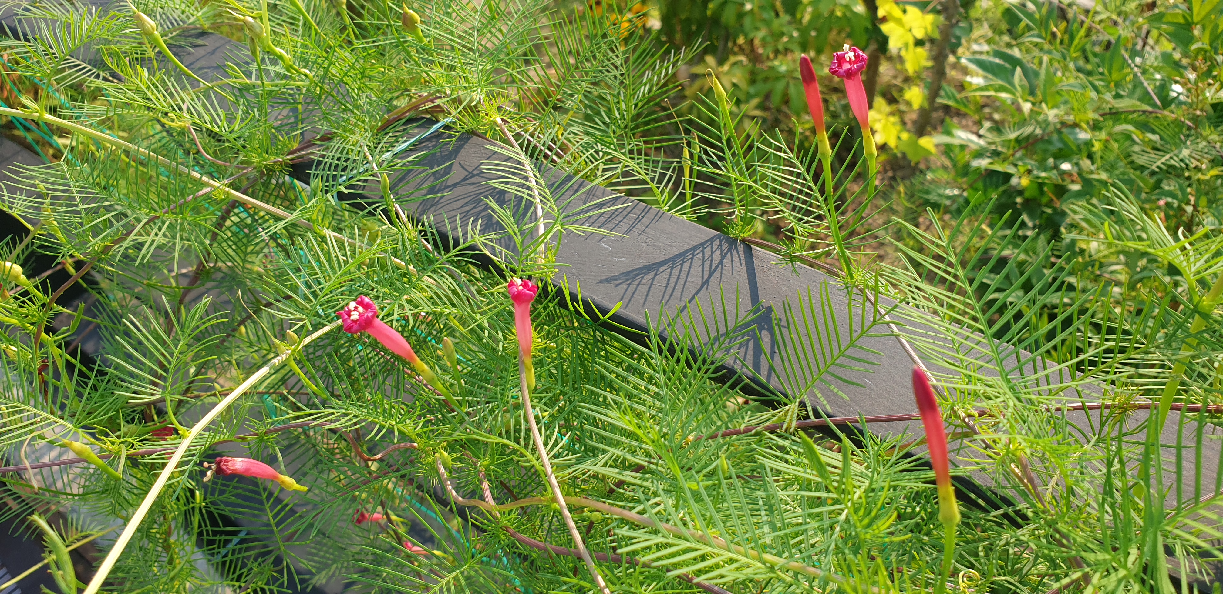 이렇게 소나무(사이프러스) 의 가시잎 같은 잎을 가진, 별모양의 유홍초는 잎이 새의 깃털 같다고 해서.. 새깃 유홍초라 부른다.