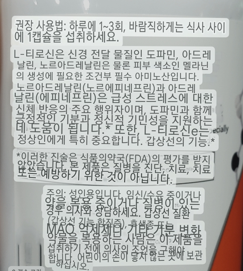 도파민의 전구물질인 티로신을 영양제로 먹는다.
