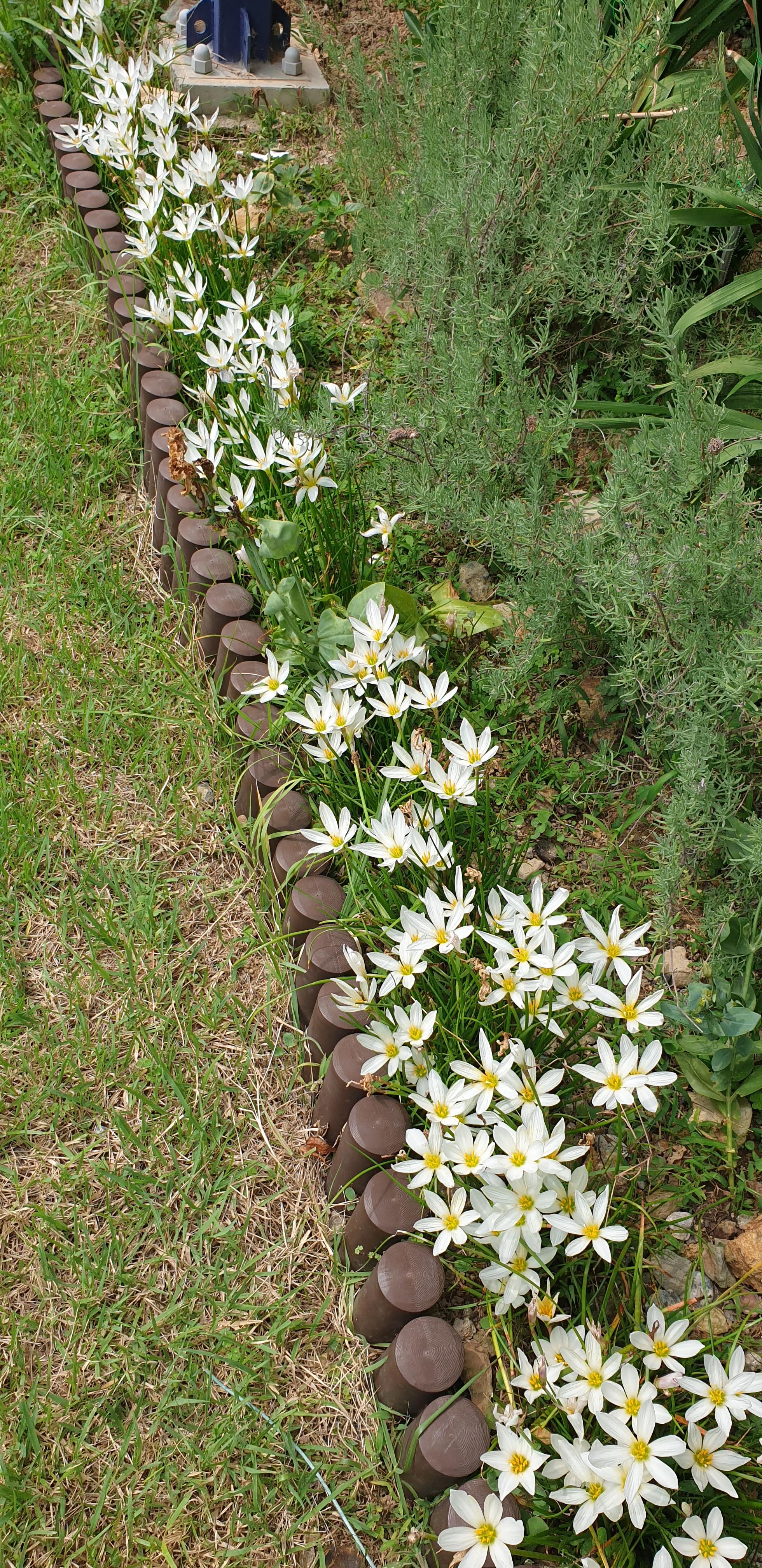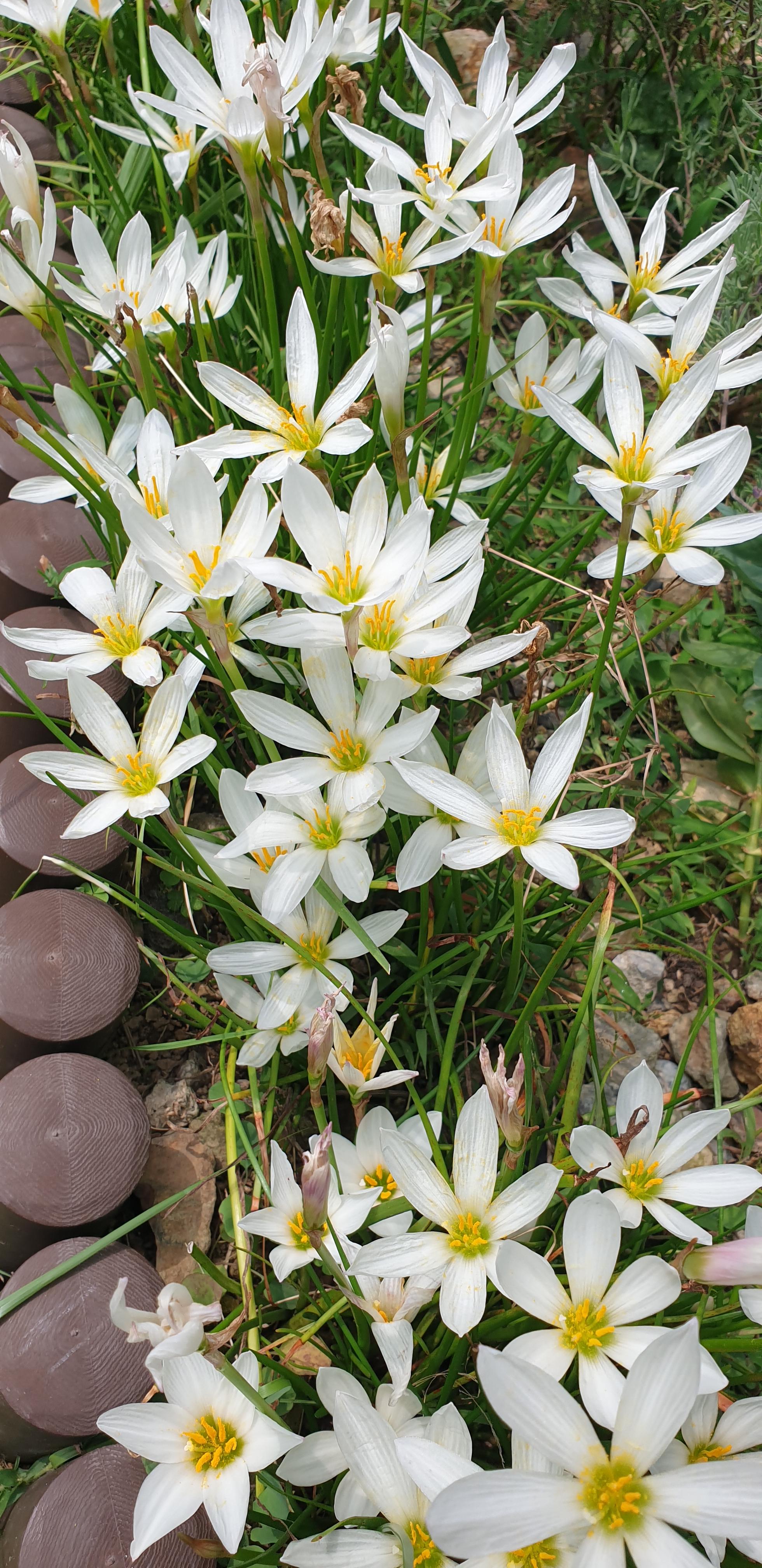 흰꽃나도사프란이 화단에 가득 피었다.