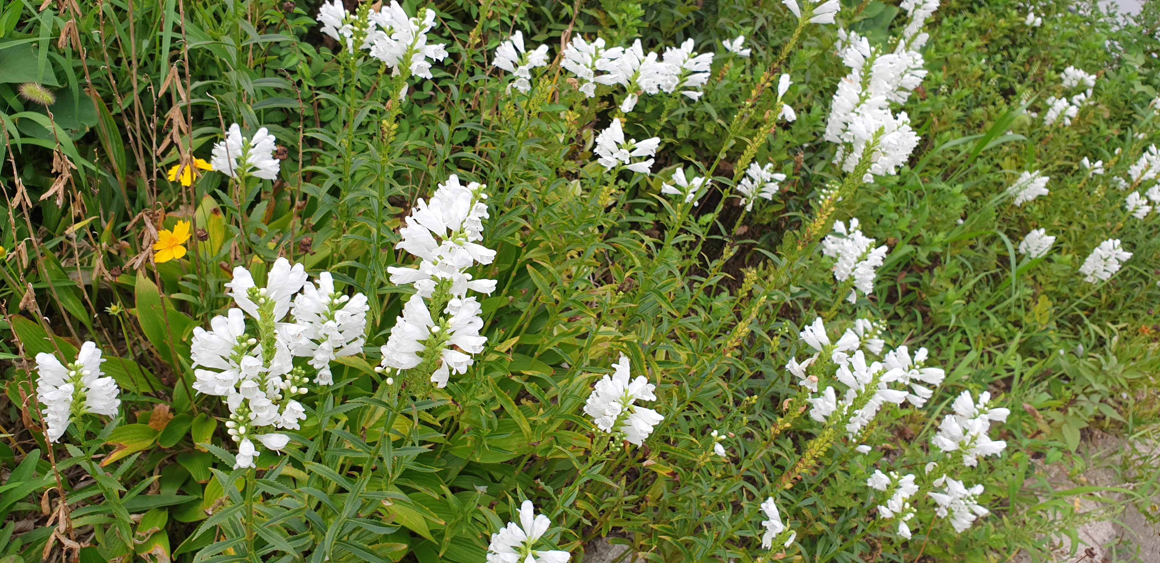 Physostegia virginiana, 순종 식물, 순종 또는 거짓 드래곤헤드[2]는 박하과, 꿀풀과의 꽃식물 종입니다. Physostegia virginiana, the obedient plant, obedience or false dragonhead,[2] is a species of flowering plant in the mint family, Lamiaceae. 속명인 Physostegia는 그리스어 physa(bladder: 방광, 주머니)와 stege(roof covering)이 합해진 것인데, 씨를 싸는 꽃받침(calyx)이 부풀어 있는 모양에서 유래.