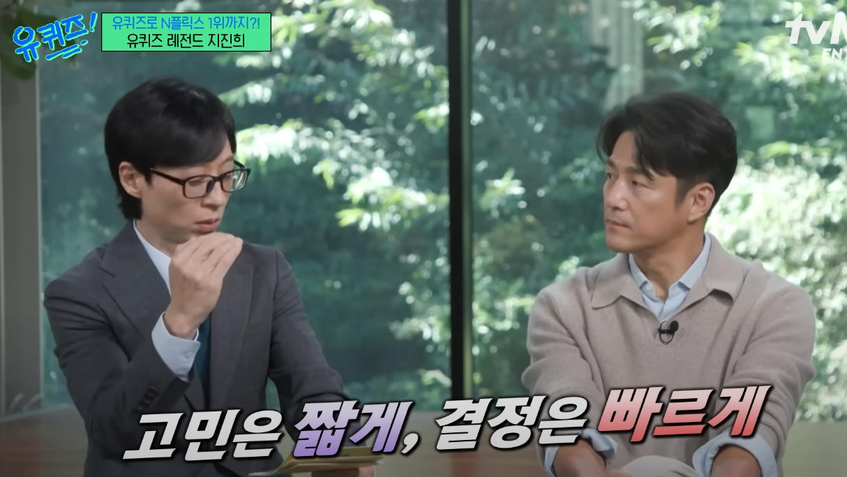 (유재석도.. 자신도 일을 결정할 떄는 되도록이면 빨리 하는 편이라고 말한다)